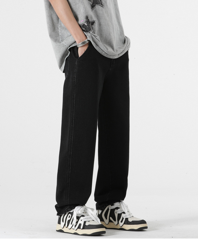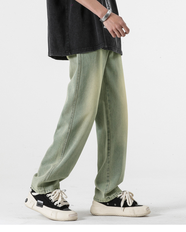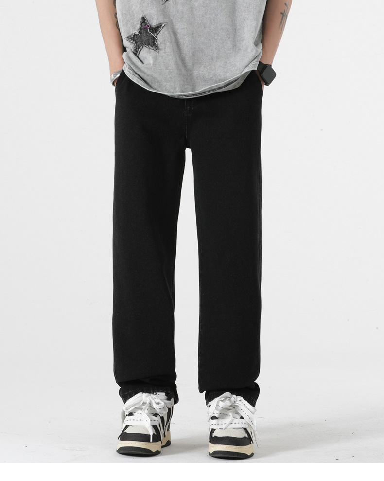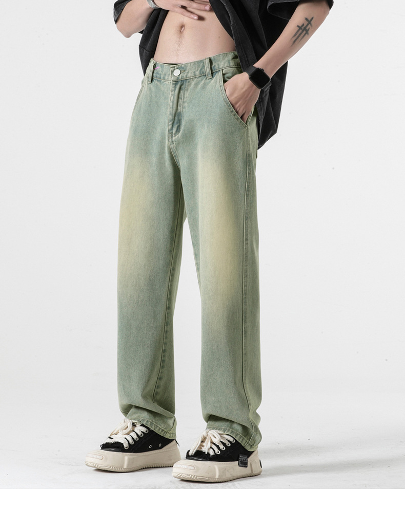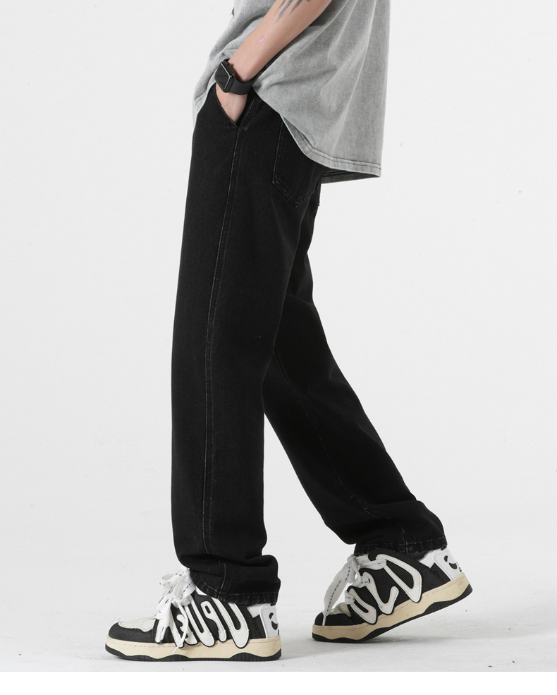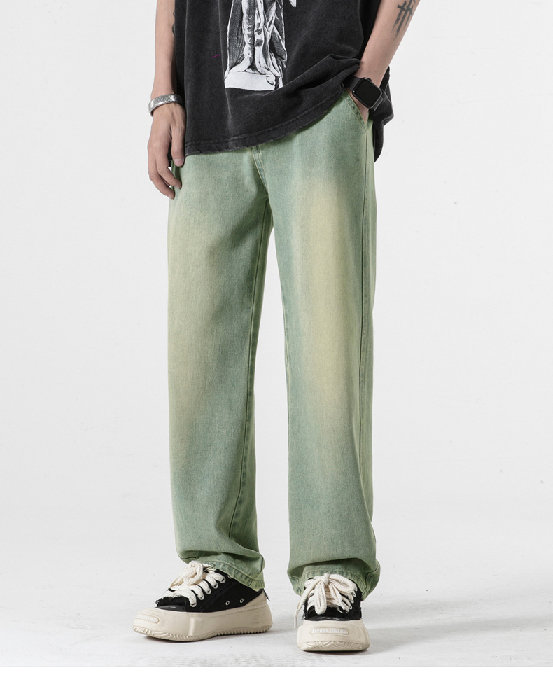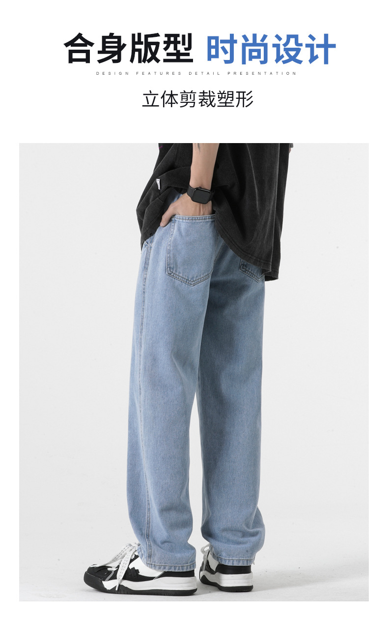 라이트 블루 청바지 남자의 미국 스타일 복고풍 십대 스트레이트 느슨한 유행 브랜드 와이드 다리 바지 새로운 스타일 소년 긴 바지