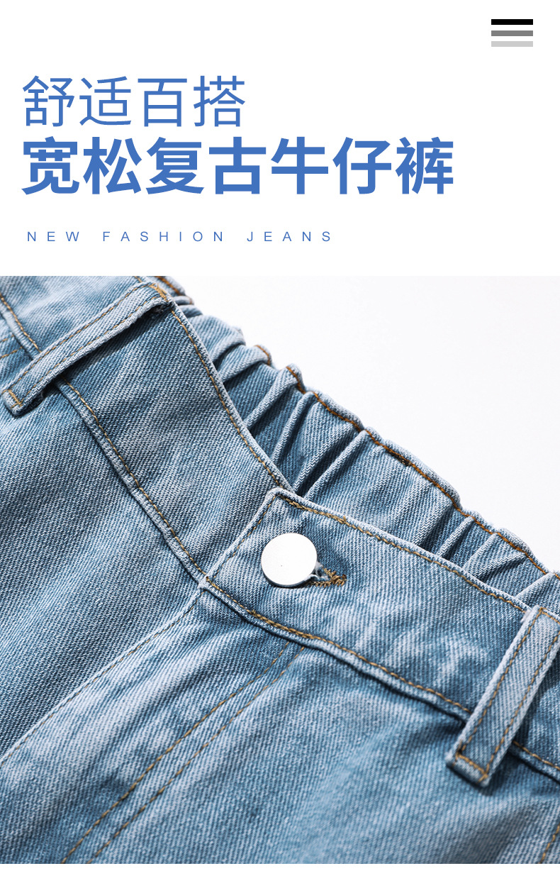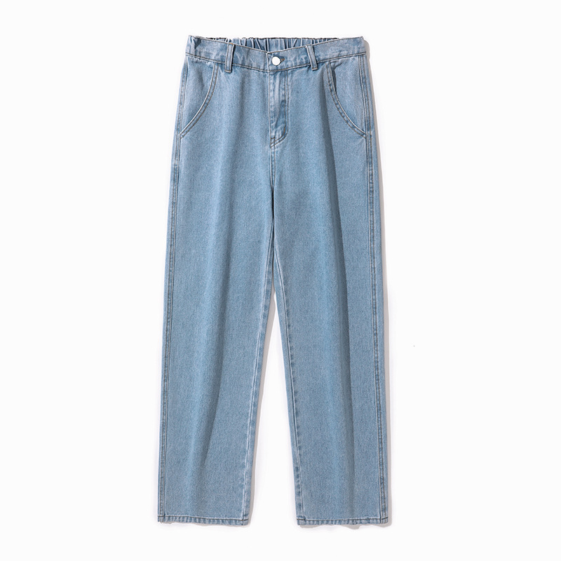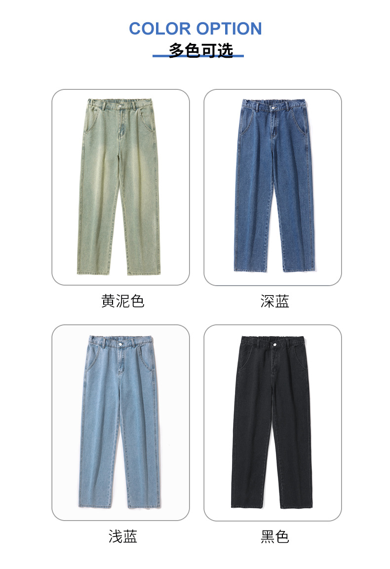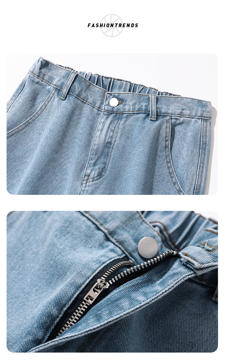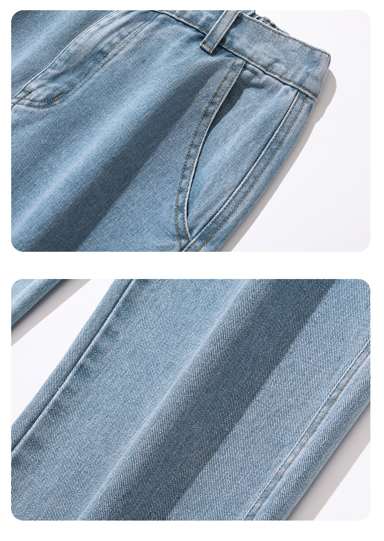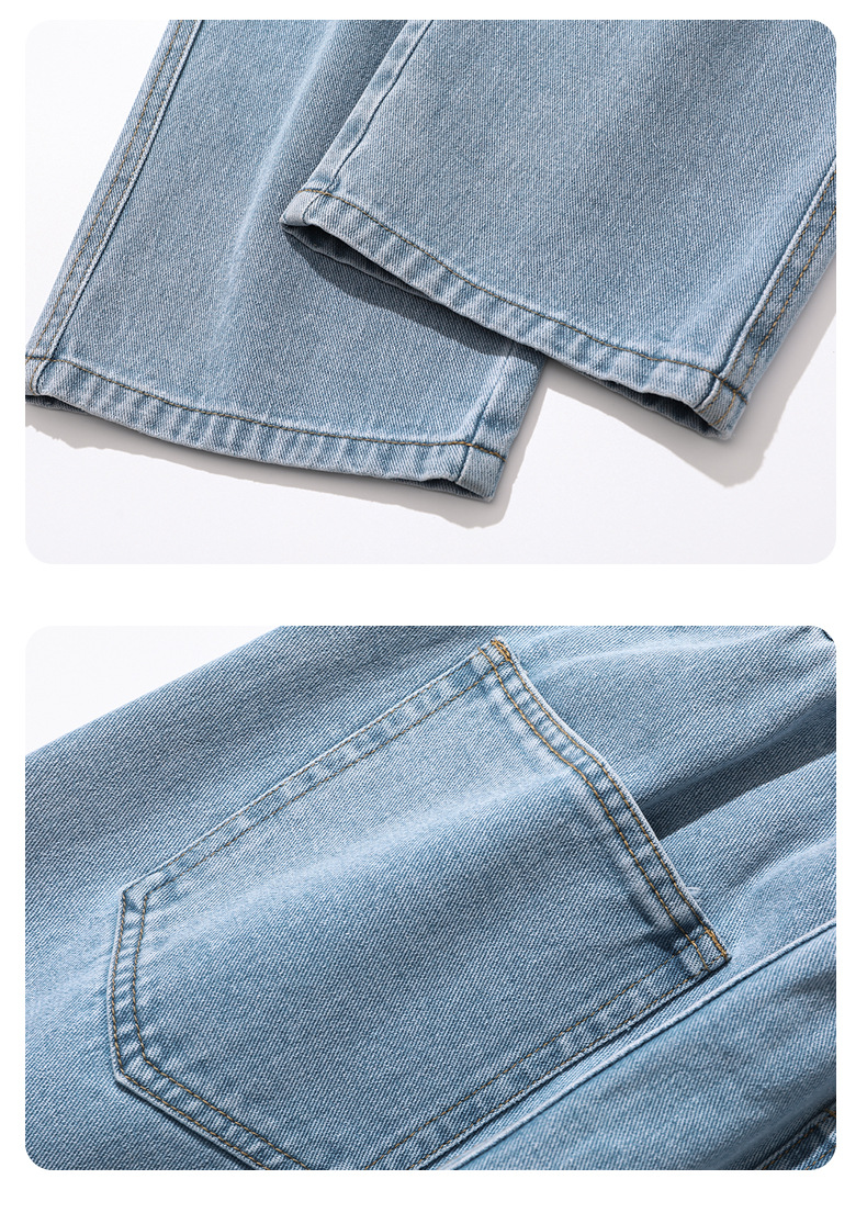 라이트 블루 청바지 남자의 미국 스타일 복고풍 십대 스트레이트 느슨한 유행 브랜드 와이드 다리 바지 새로운 스타일 소년 긴 바지스토어 가기