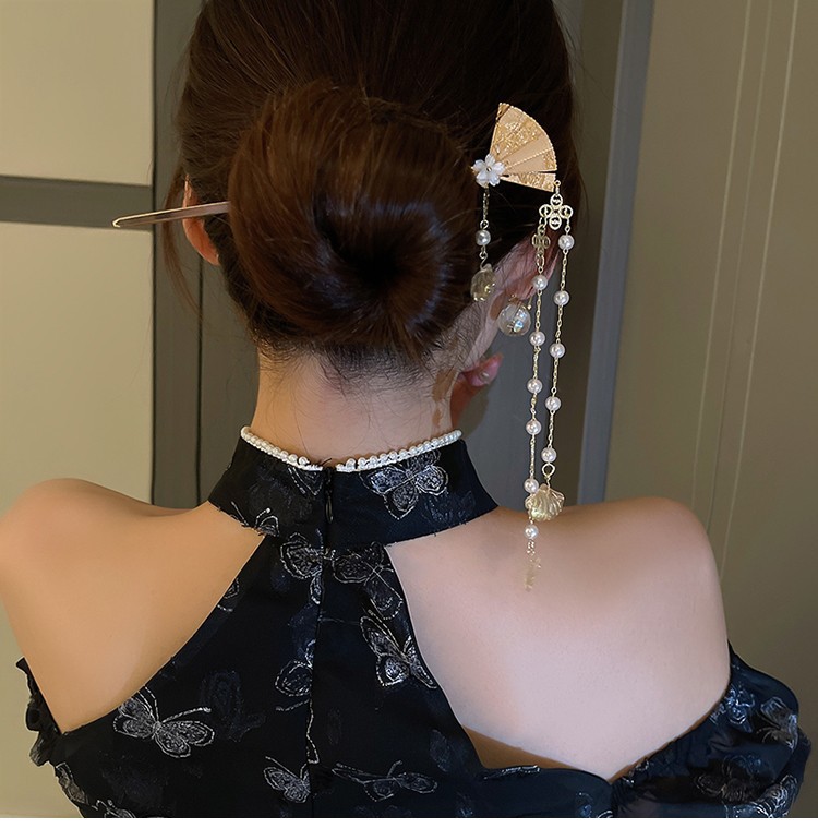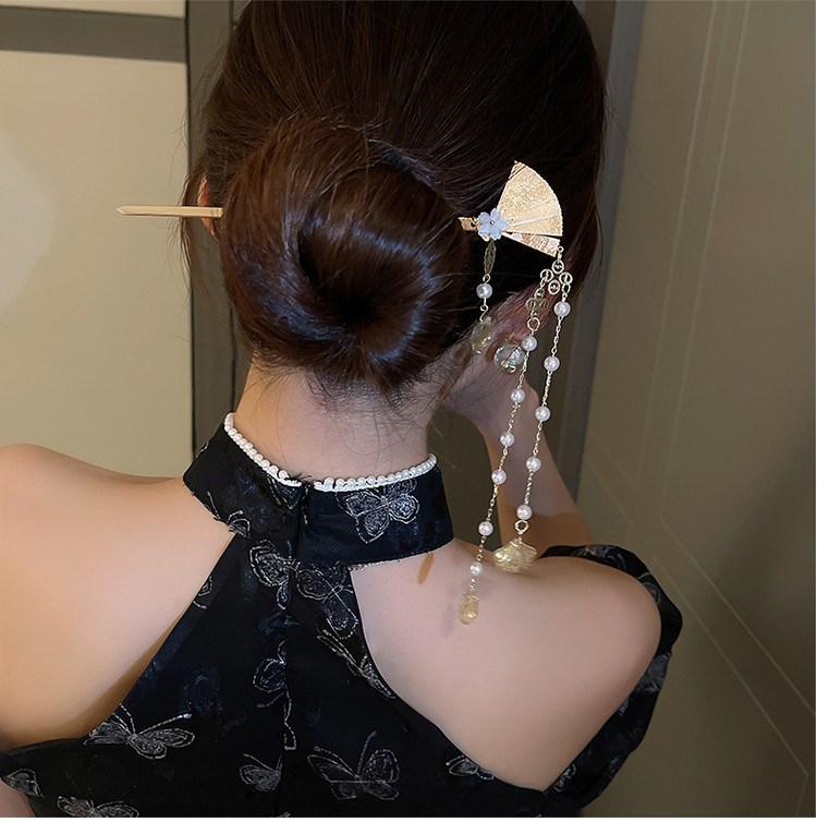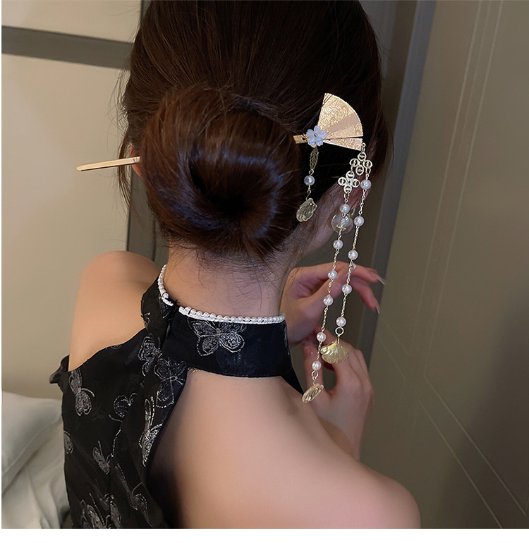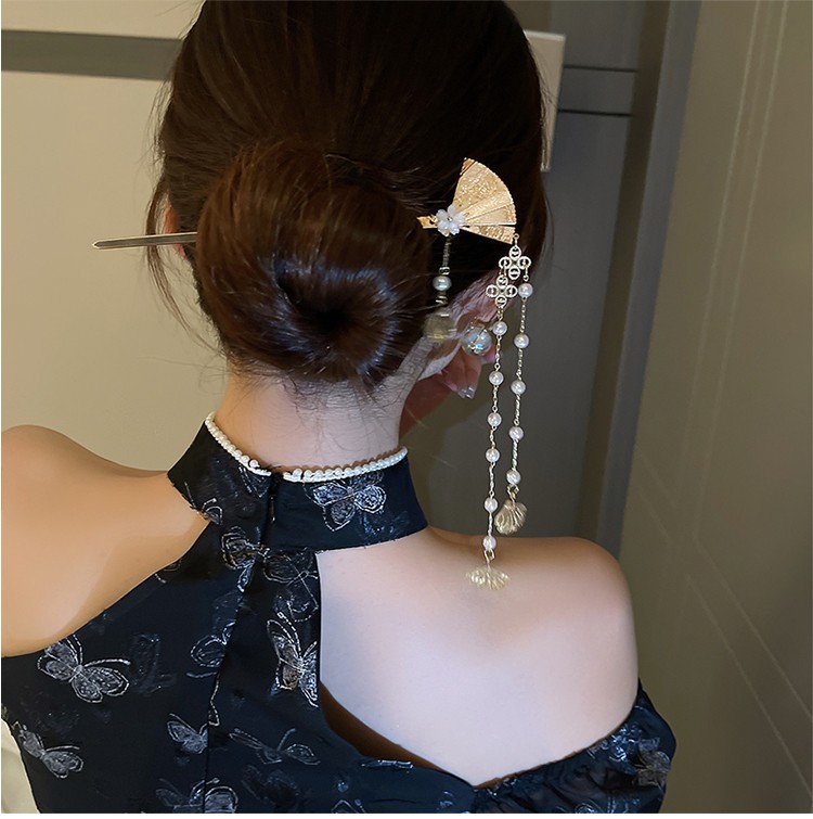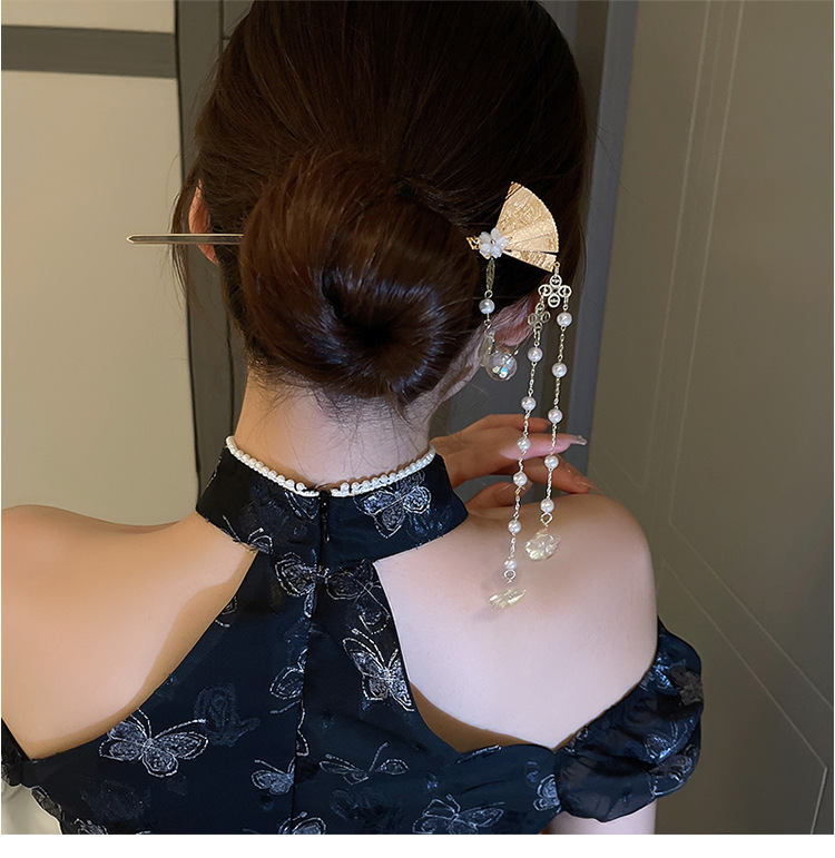 골동품 워킹 팬 진주 술 머리핀 여성용 하이 엔드 센스 새로운 중국 치파오 머리 장식 디스크 헤어 걸쇠 헤어 머리핀 패션스토어 가기