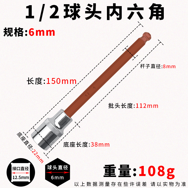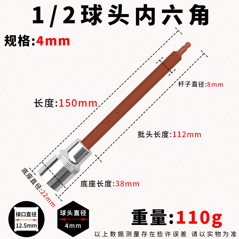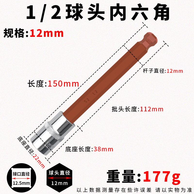 육각 소켓 헤드 세트 S2 전기 렌치 1/2 대형 플라이 내부 6 코너 볼 헤드 내부 육각 압력 배치 드라이버 배치 헤드