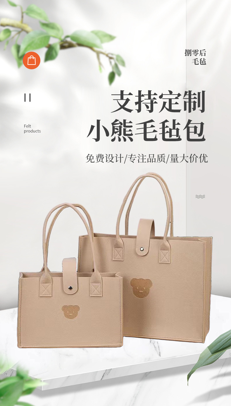 두꺼운 곰 펠트 가방 휴대용 동반 선물 핸드백 도시락 보관 가방