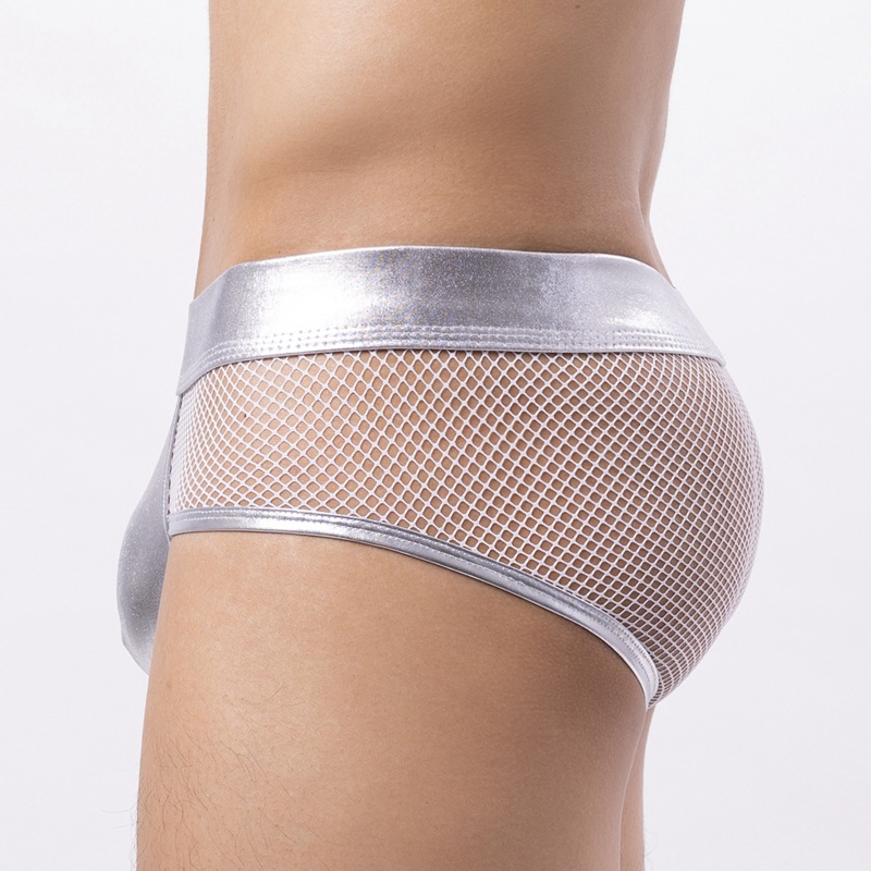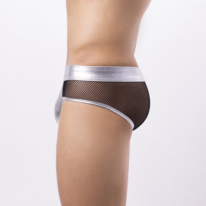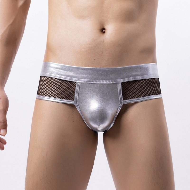 Neyiku 남성 비키니 삼각형 섹시한 특허 가죽 색상 일치하는 메쉬 속옷 낮은 허리 섹시한 유럽과 미국의 새로운스토어 가기