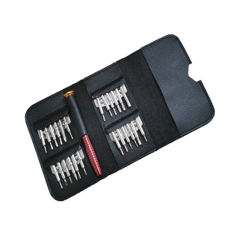 24 in 1 드라이버 세트 가죽 클립형 휴대 전화 분해 도구 컴퓨터 안경 가죽 가방 조합 수리 세트