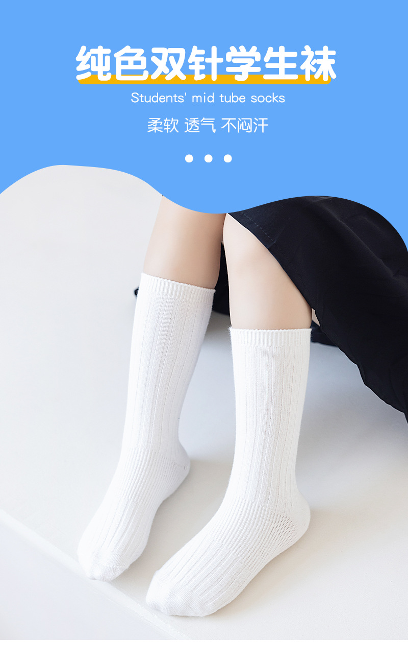 대학풍 흑백 아동 양말 가을 겨울 인기 이중 바늘 단색 남아 여아 학생 양말 도매