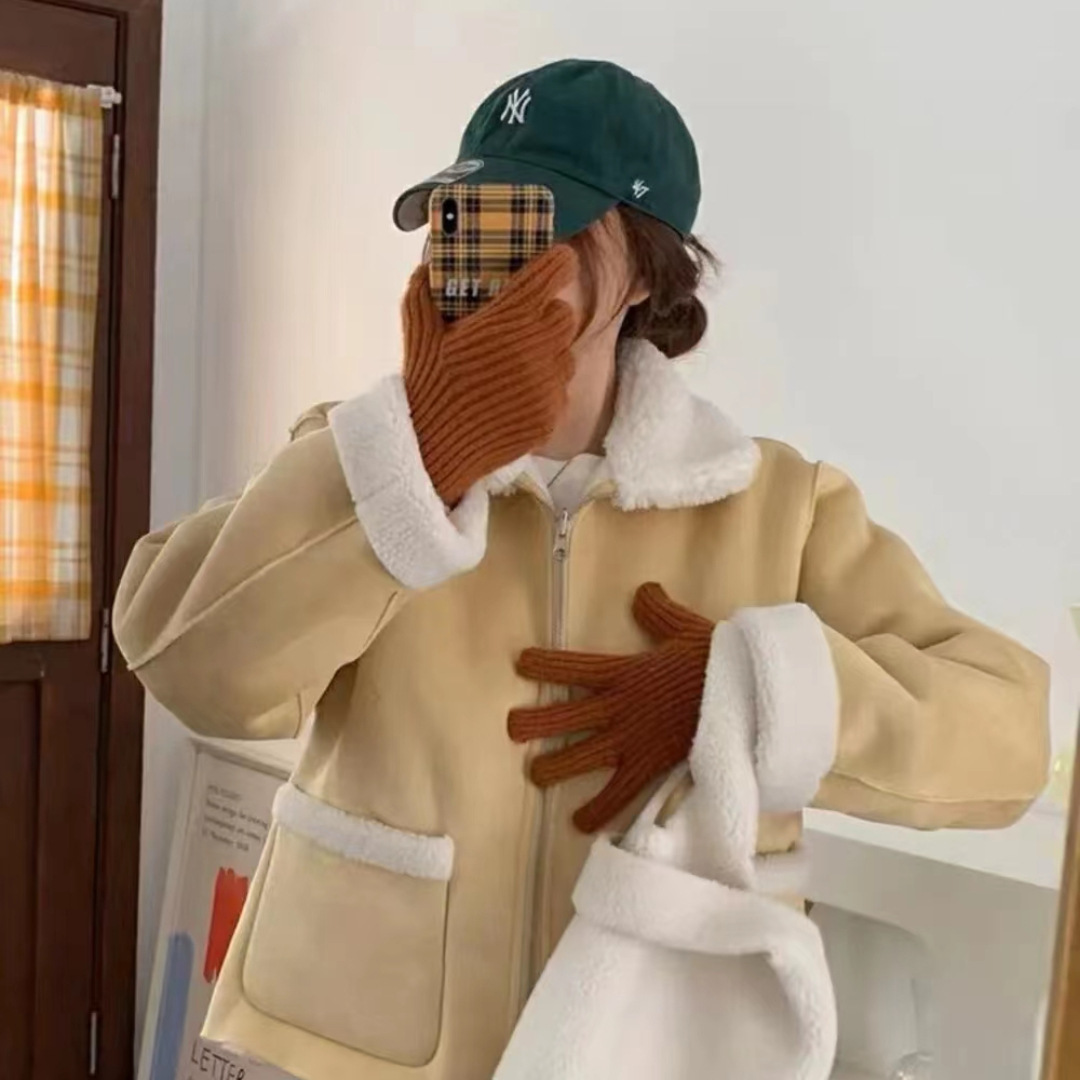 크리스마스와 새해 빨간 장갑 니트 단색 한국어 손가락 노출 손가락 터치 스크린 방한 겨울 두꺼운 따뜻한 손목스토어 가기
