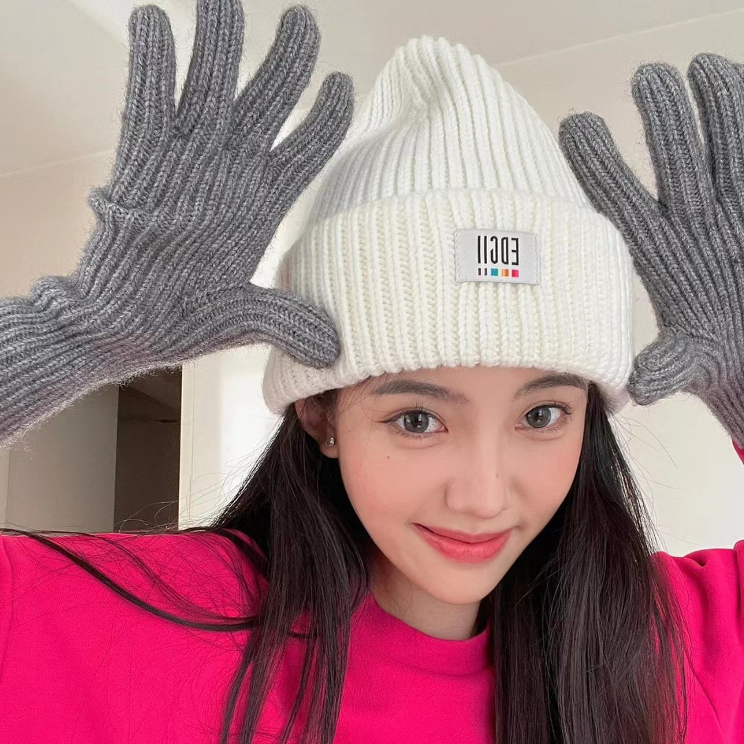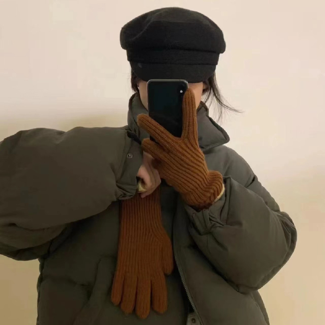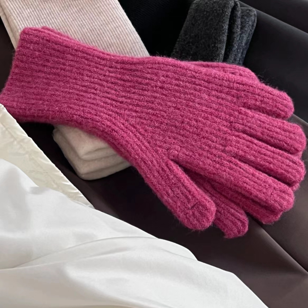 크리스마스와 새해 빨간 장갑 니트 단색 한국어 손가락 노출 손가락 터치 스크린 방한 겨울 두꺼운 따뜻한 손목