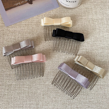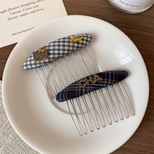 韩系复古格纹KT猫发梳时尚气质刘海倒插梳格子布发梳带齿发卡发夹