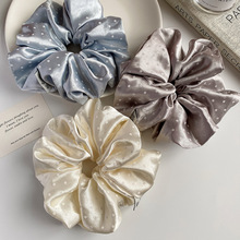 简约缎面黑白波点大肠圈复古法式韩国新款丸子头皮筋女百搭头绳