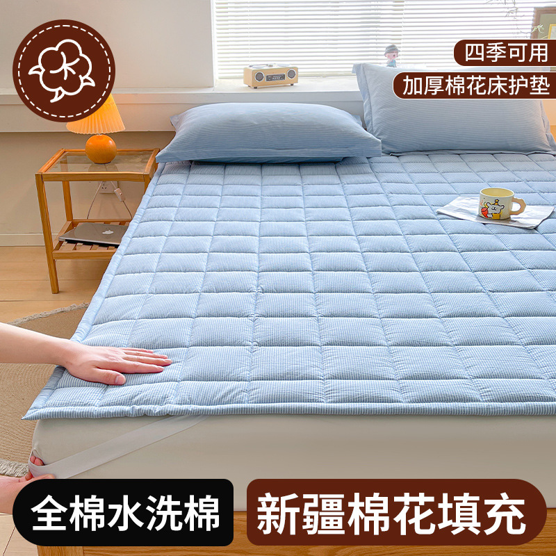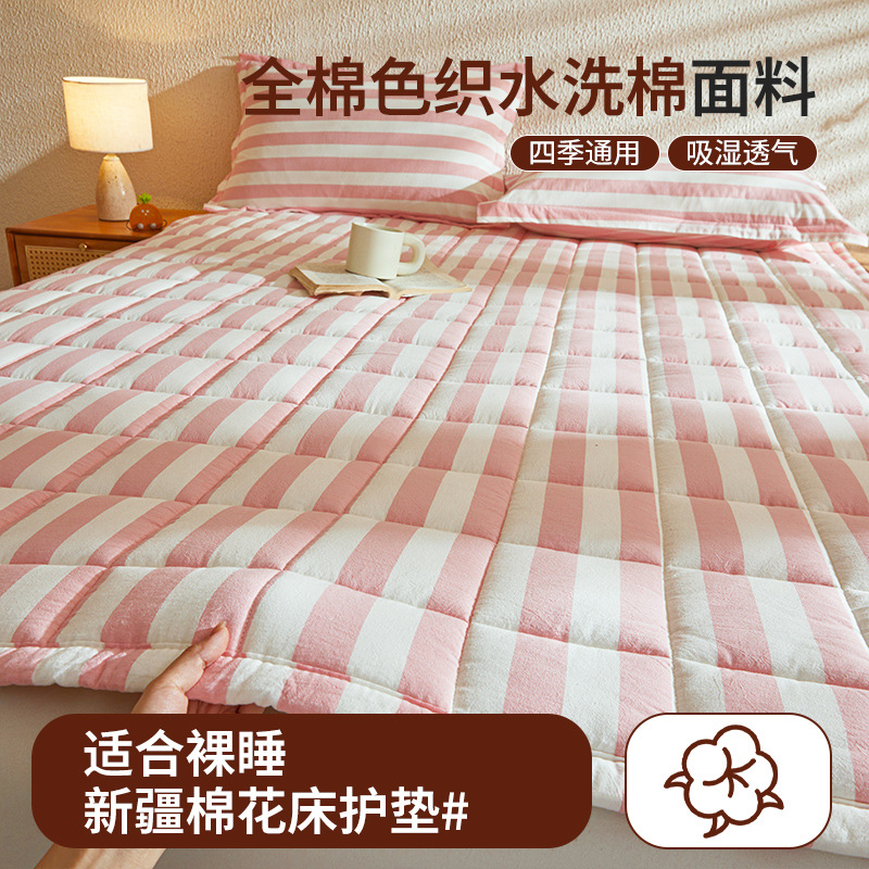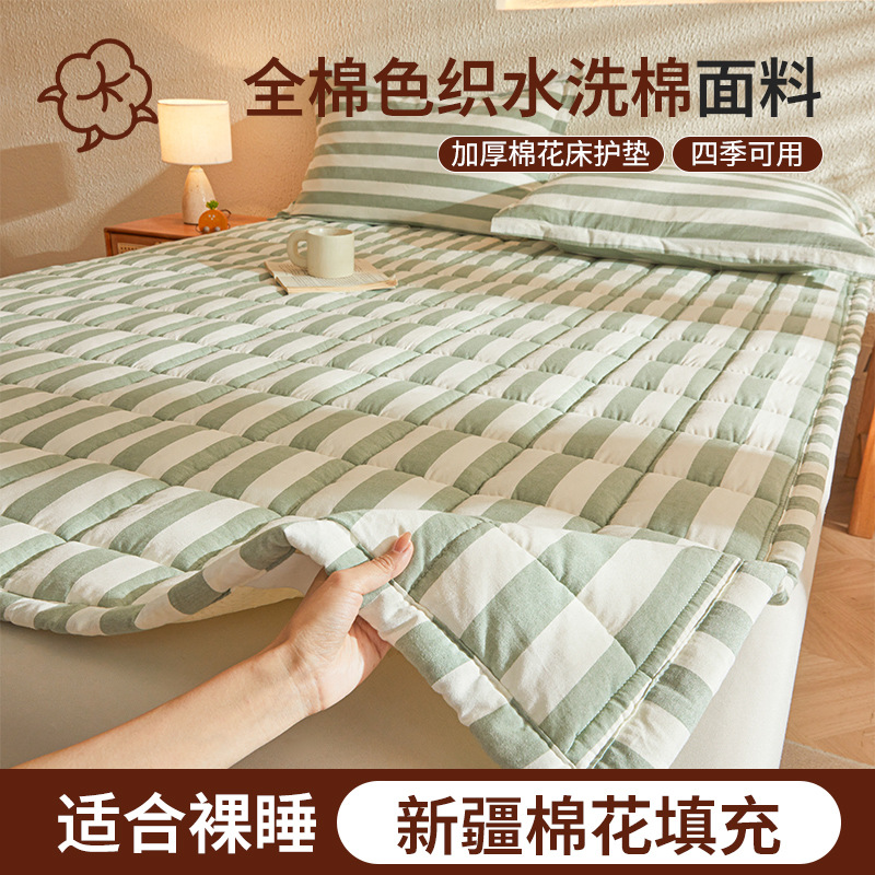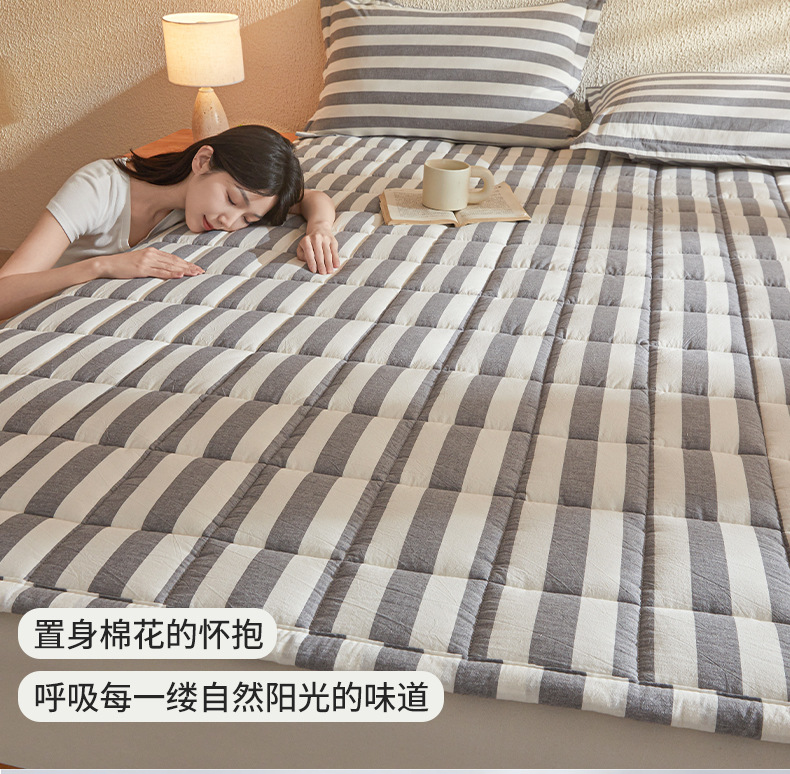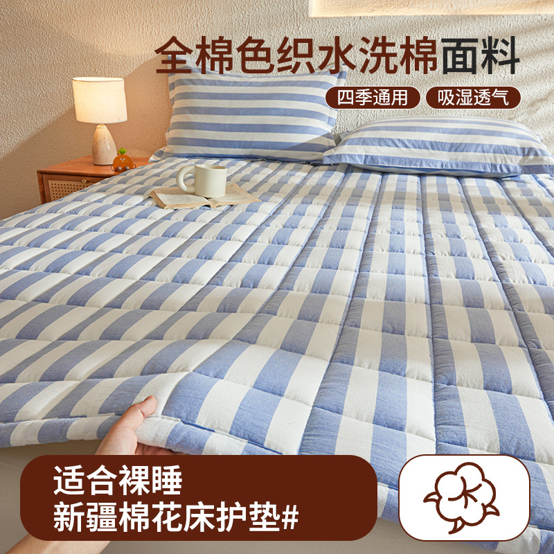 새로운 무게가 있고 두꺼운 순수 면 매트리스 원사 염색 된 세척 된 면 퀼트 침대 패드 홈 기숙사 매트리스 제조 업체 도매스토어 가기