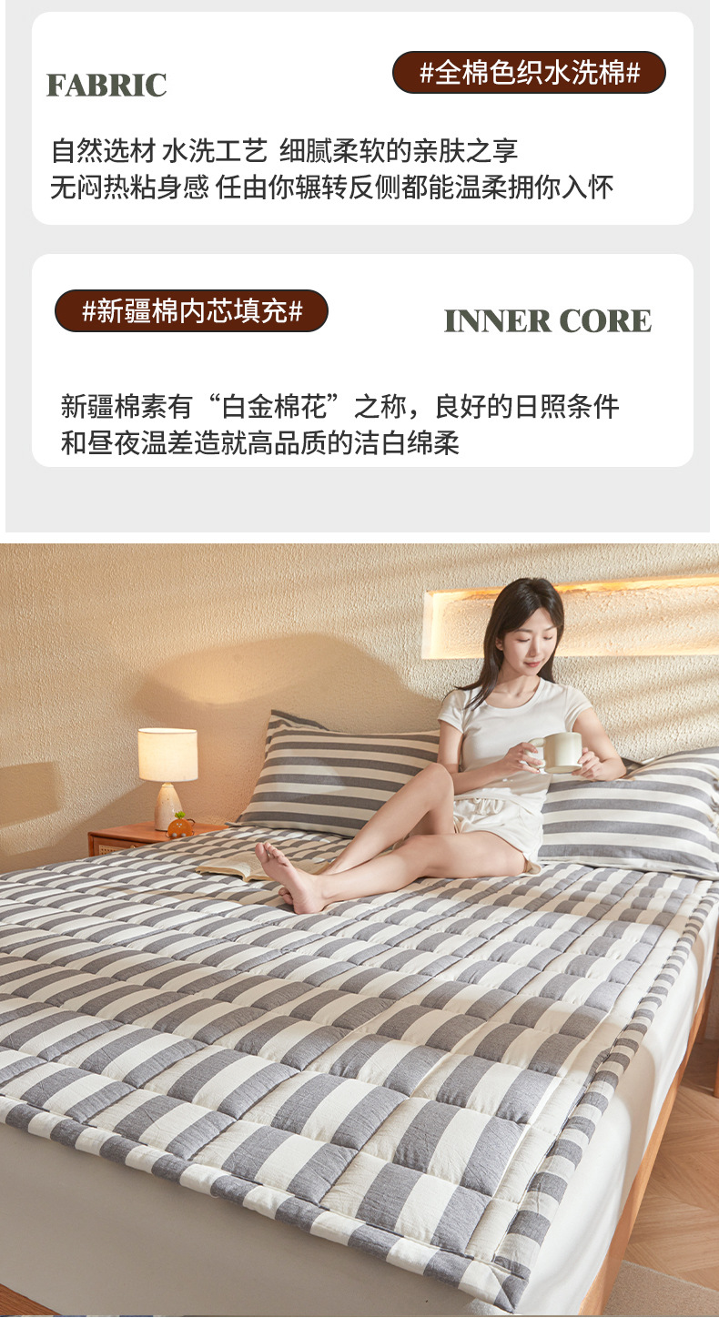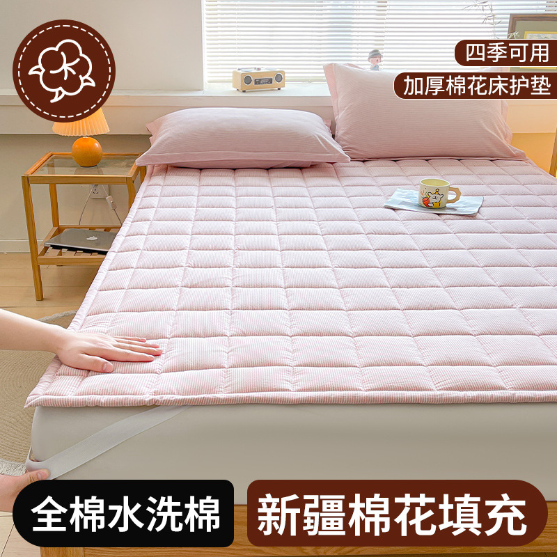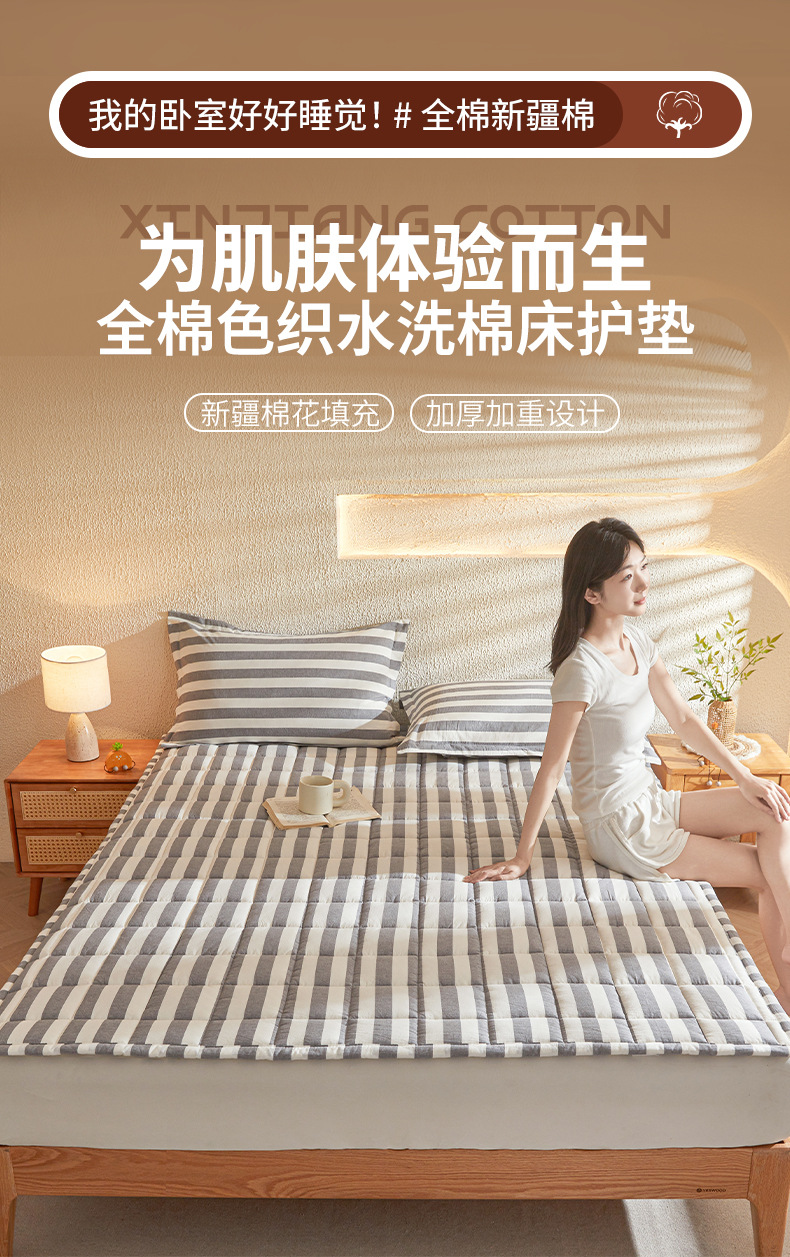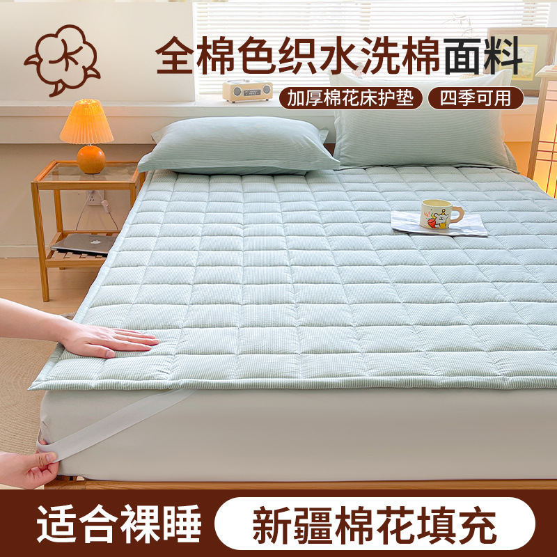 새로운 무게가 있고 두꺼운 순수 면 매트리스 원사 염색 된 세척 된 면 퀼트 침대 패드 홈 기숙사 매트리스 제조 업체 도매스토어 가기