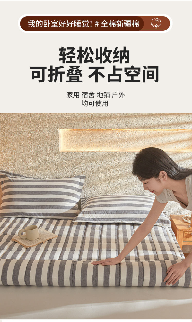 새로운 무게가 있고 두꺼운 순수 면 매트리스 원사 염색 된 세척 된 면 퀼트 침대 패드 홈 기숙사 매트리스 제조 업체 도매