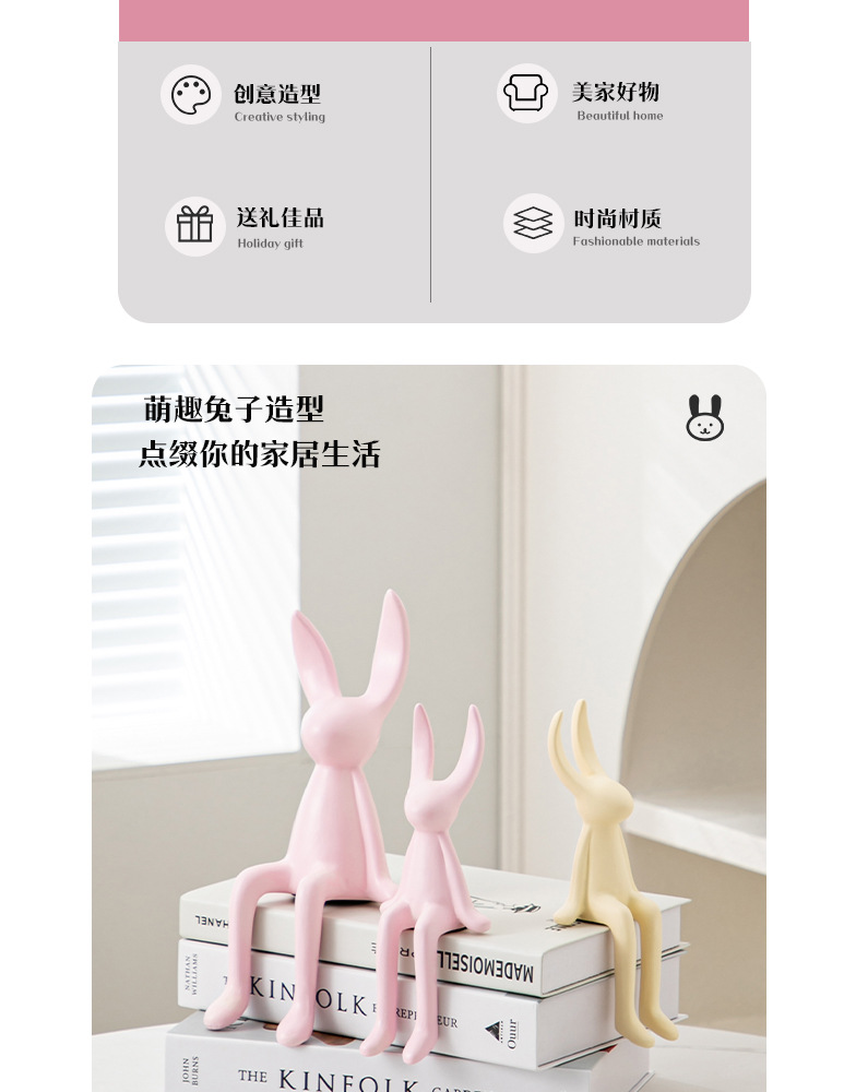 마카롱 크리 에이 티브 만화 앉아있는 자세 긴 귀 토끼 장식품 하이 엔드 라이트 럭셔리 거실 TV 캐비닛 와인 캐비닛 입구 장식