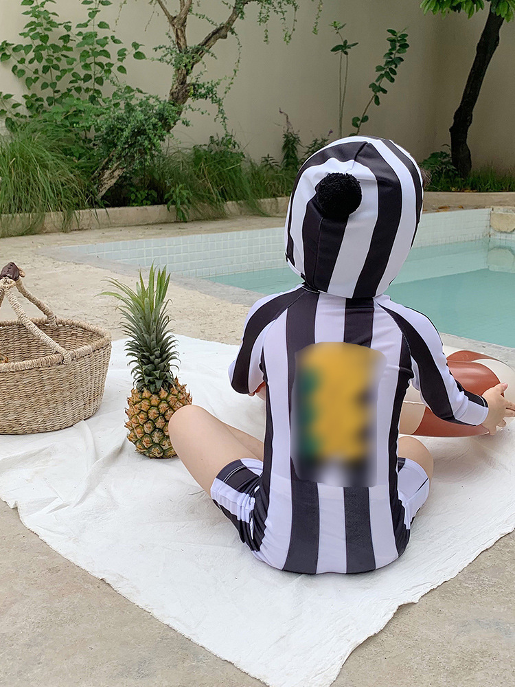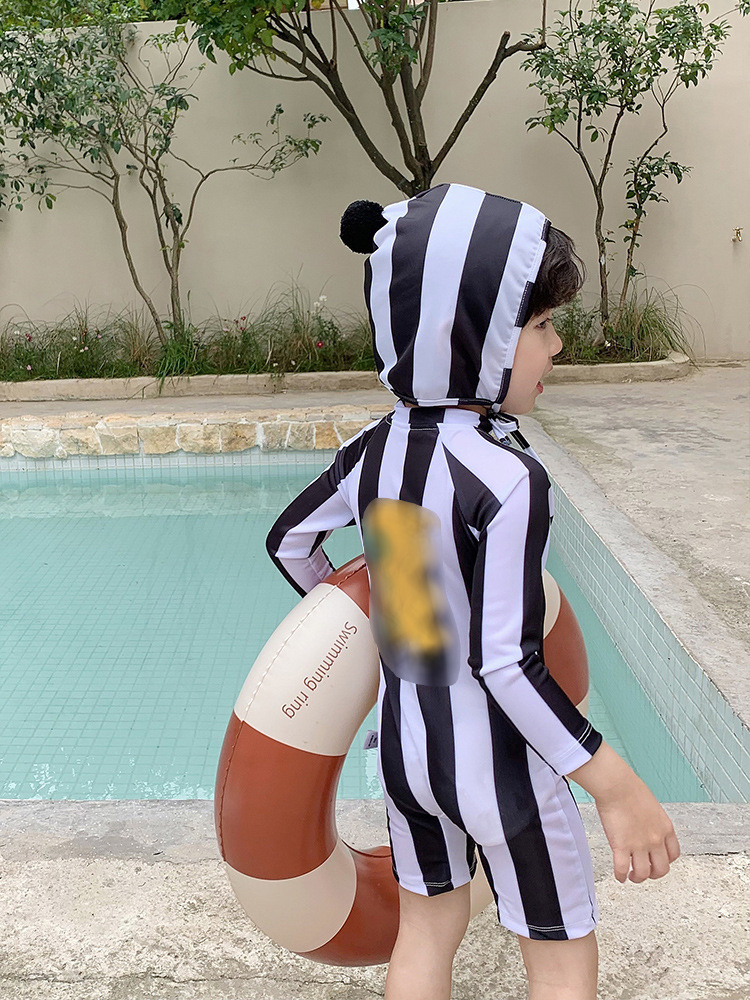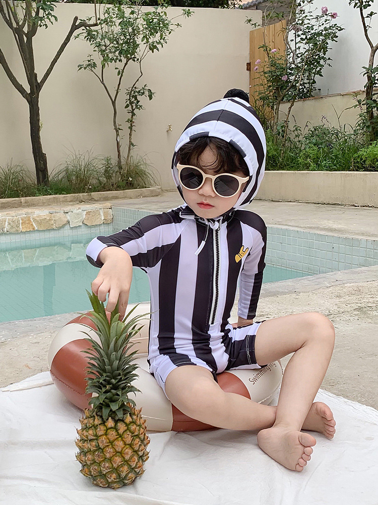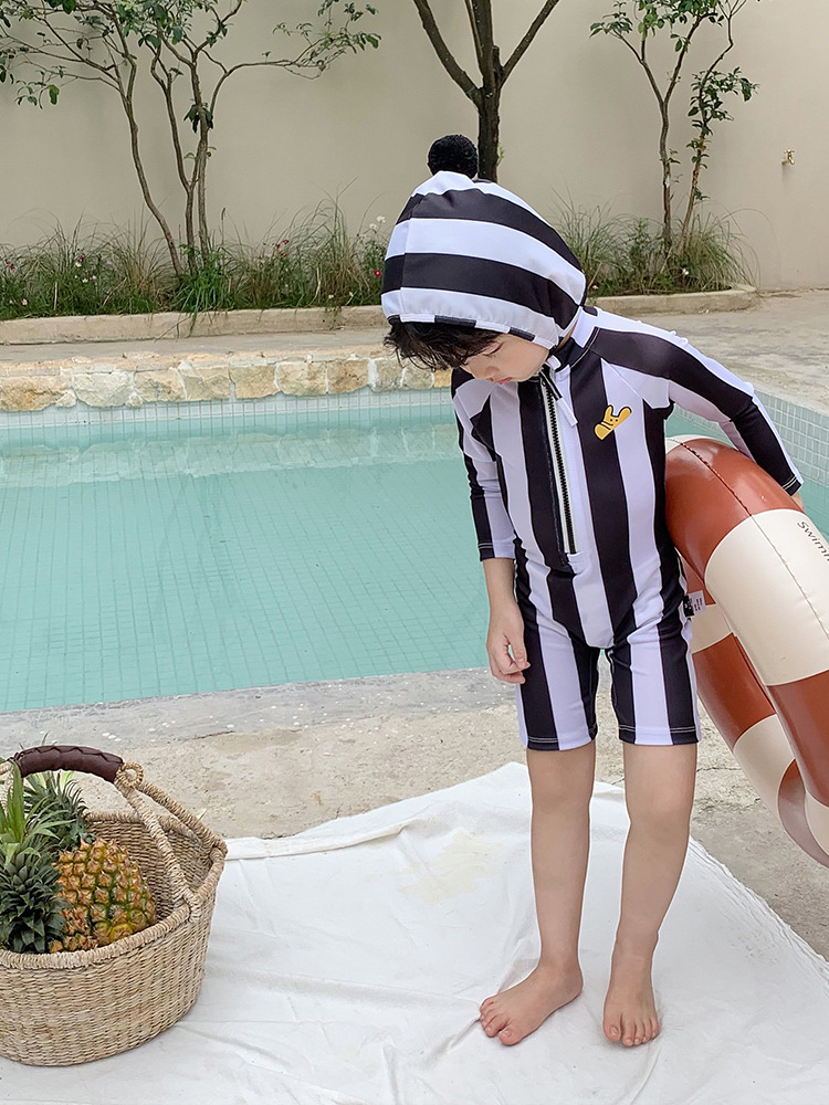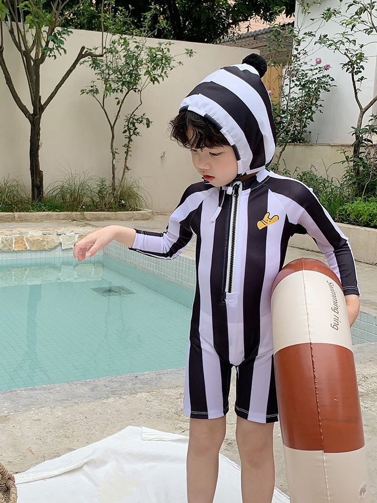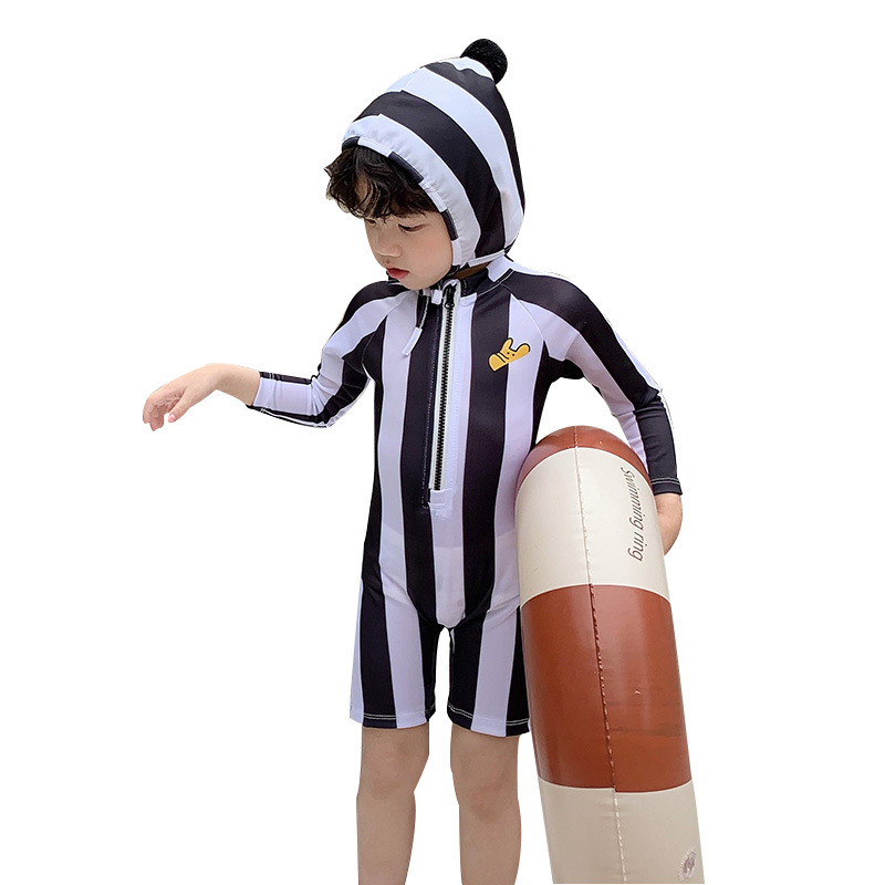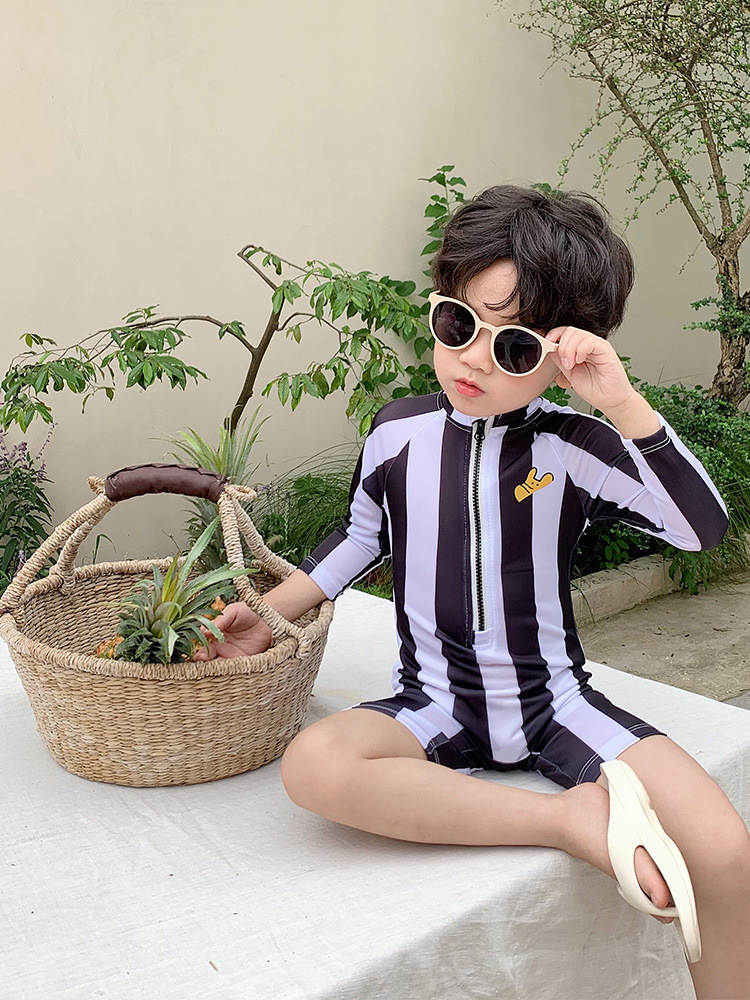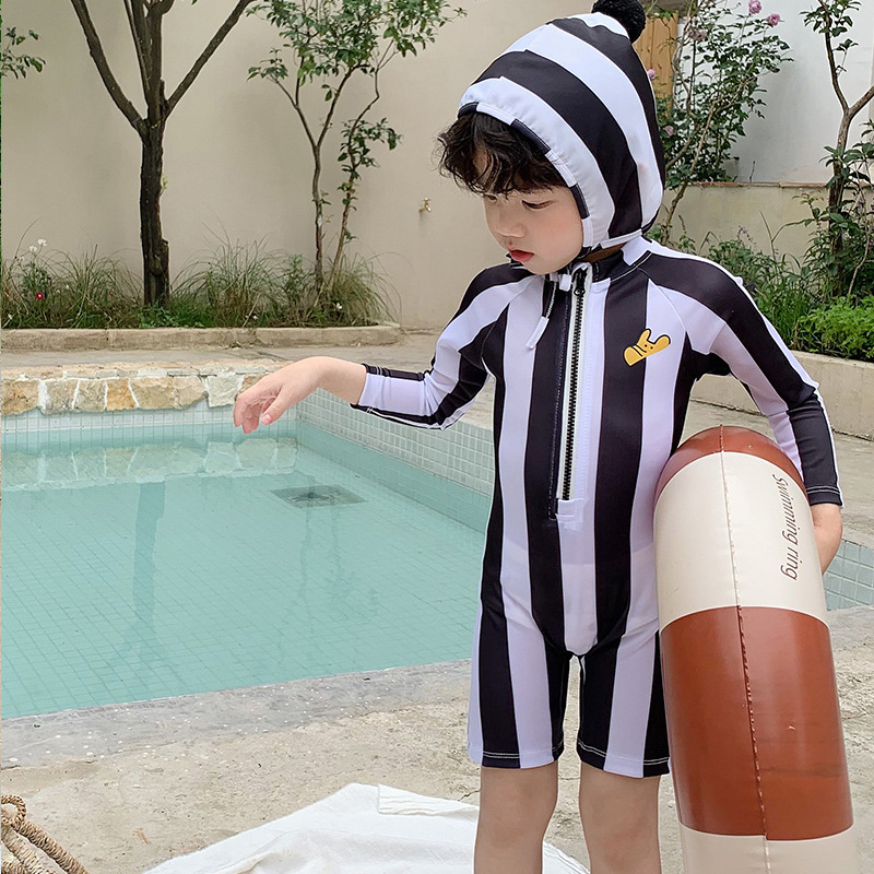 새로운 만화 한국 스타일 어린이 원피스 수영복 어린이를위한 여름 긴팔 수영복 자외선 차단제 해변 휴가 수영복