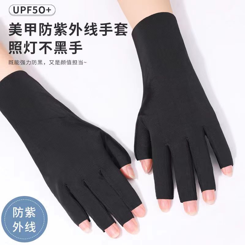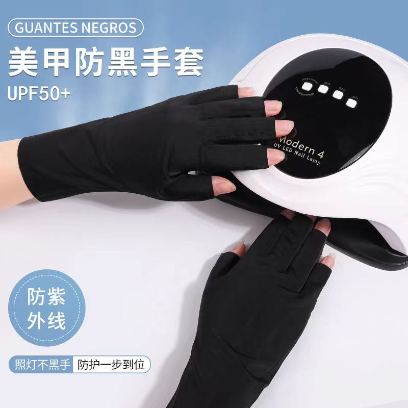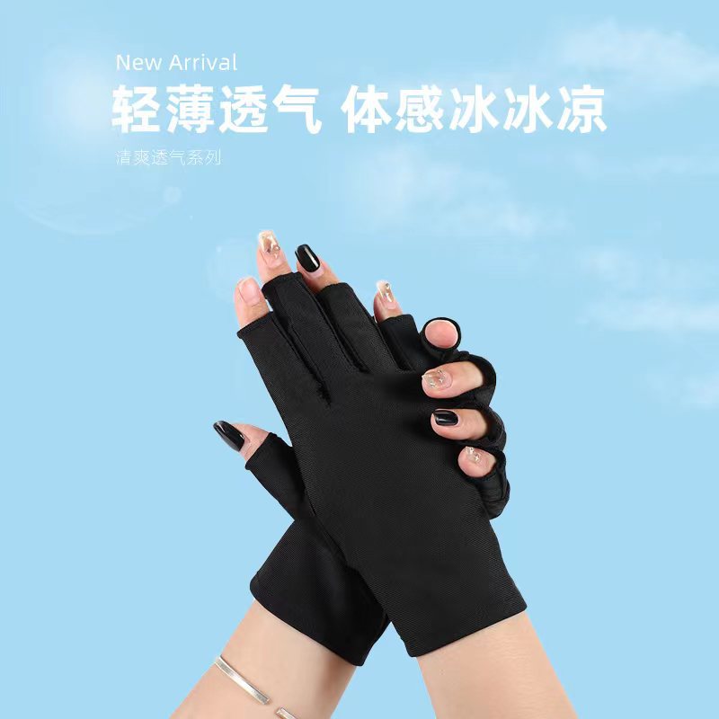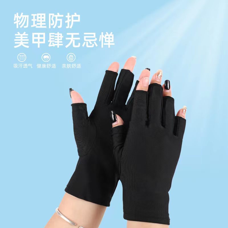 크로스 보더 하이 블릿 자외선 차단제 네일 아트 장갑 여성용 여름 얇은 자외선 차단 장갑 반 손가락 자외선 차단 블랙 손톱스토어 가기