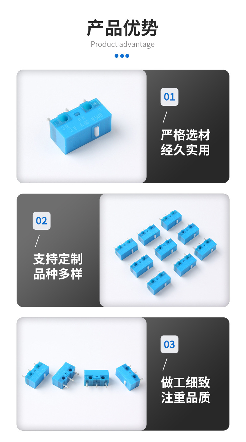 HUANO 블루 쉘 시리즈 마우스 마이크로 스위치 2천만회 오므론 D2FC-F-7N 대체품