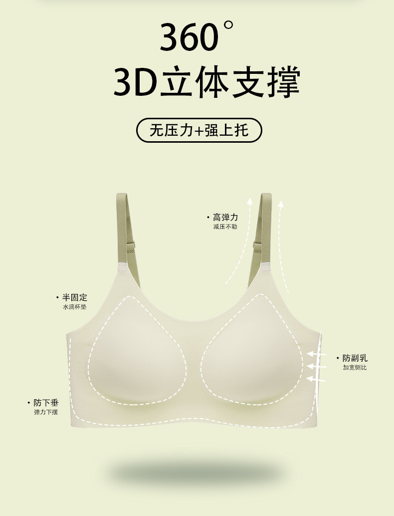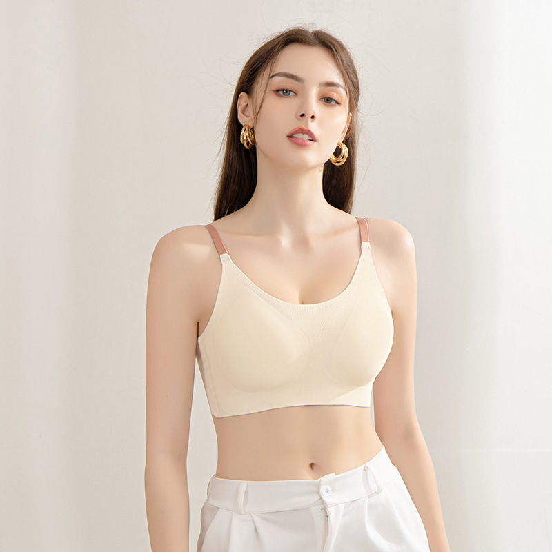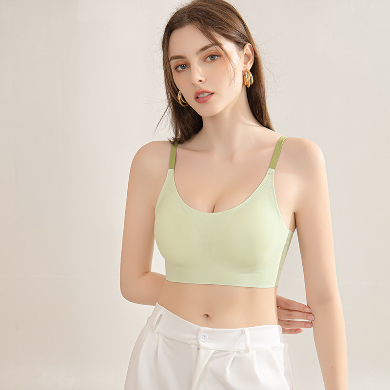 여성용 무봉제 속옷, 여름용 반고정 물방울컵 통기성 스포츠 브라, 작은 가슴용 와이어 프리 브라, 눈에 보이지 않고 더 작아 보이는 브라