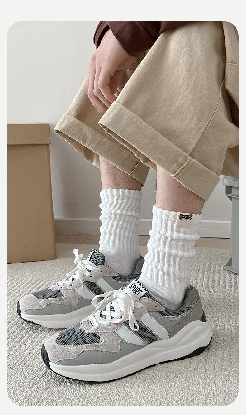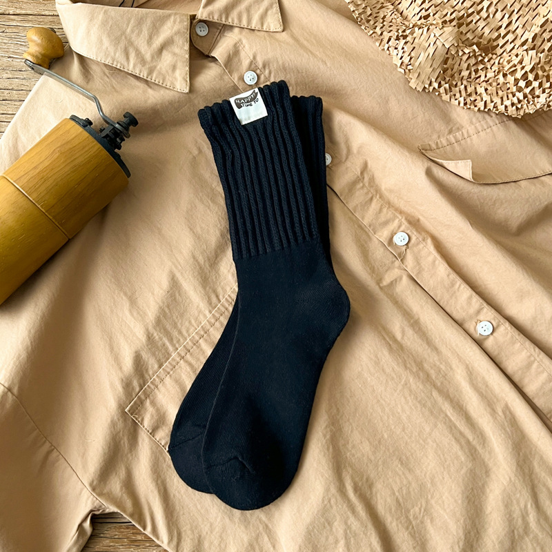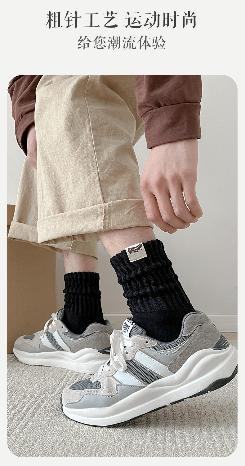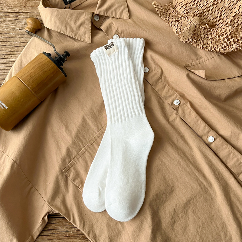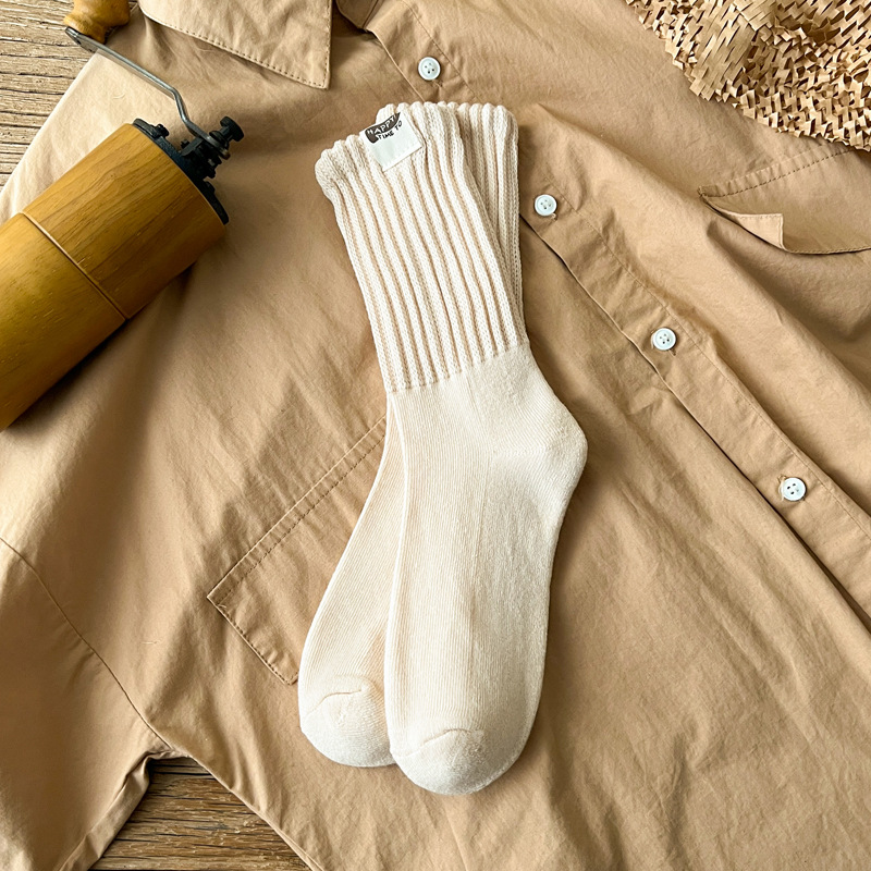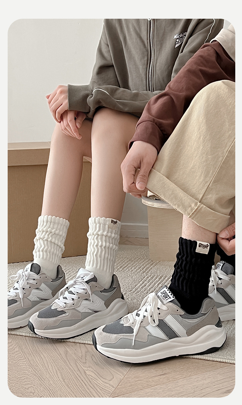 Yuwenle 두꺼운 라인 남자 긴 양말 두꺼운 수건 바닥 도시 소년 일본 빈티지 스포츠 커플 튜브 양말