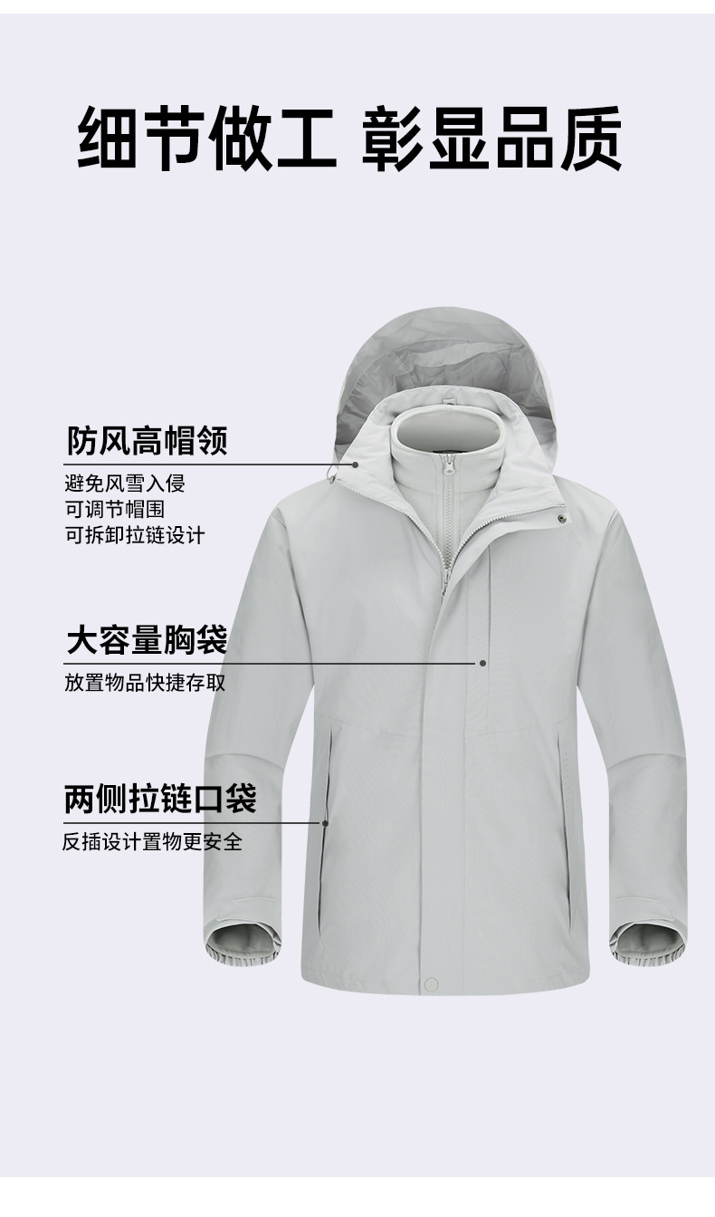 신형 3-in-1 재킷 여성용 실버 폭스 벨벳 투피스 남성용 방수 방오 작업복 가을 겨울 방수 통기성