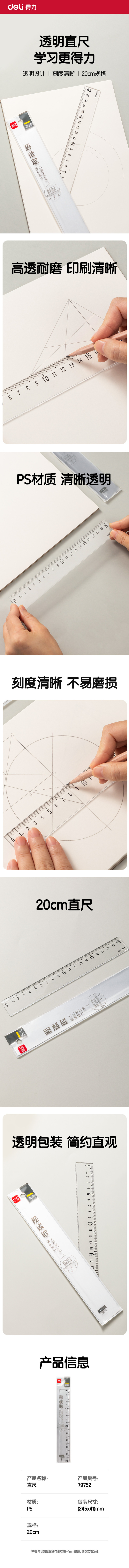 델리 79752 초등학생용 자 20cm PS 투명 물결자 PS 소재스토어 가기