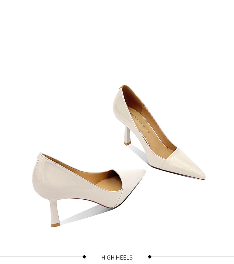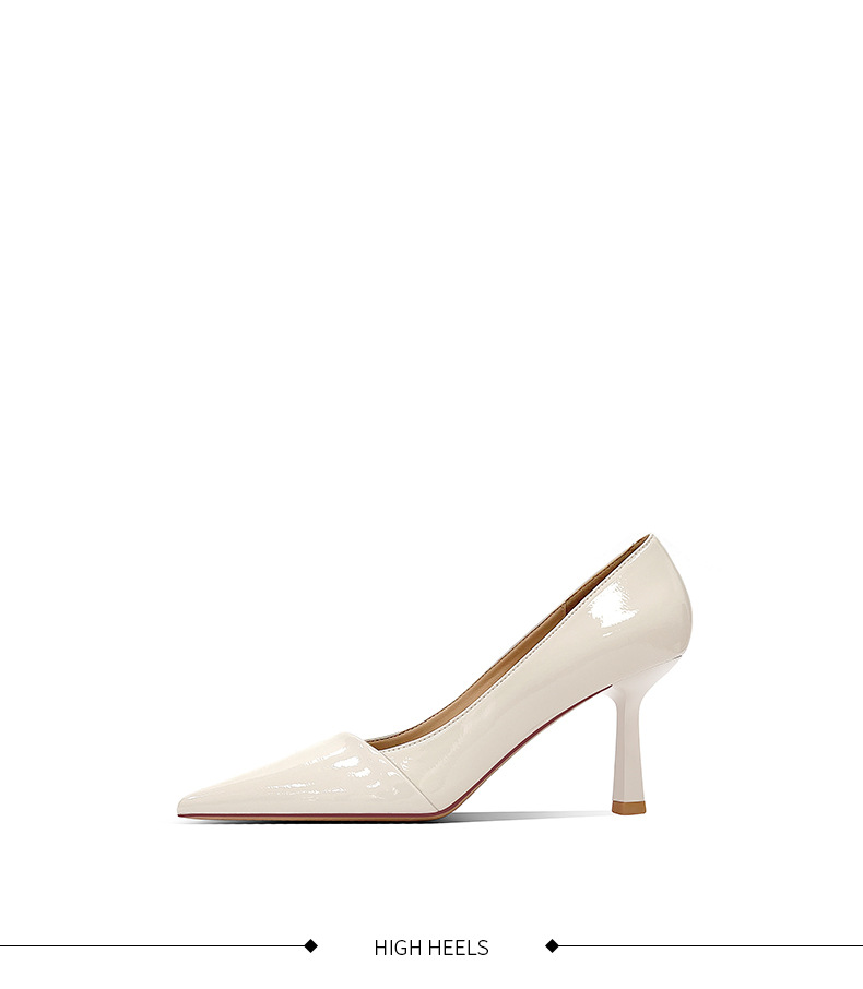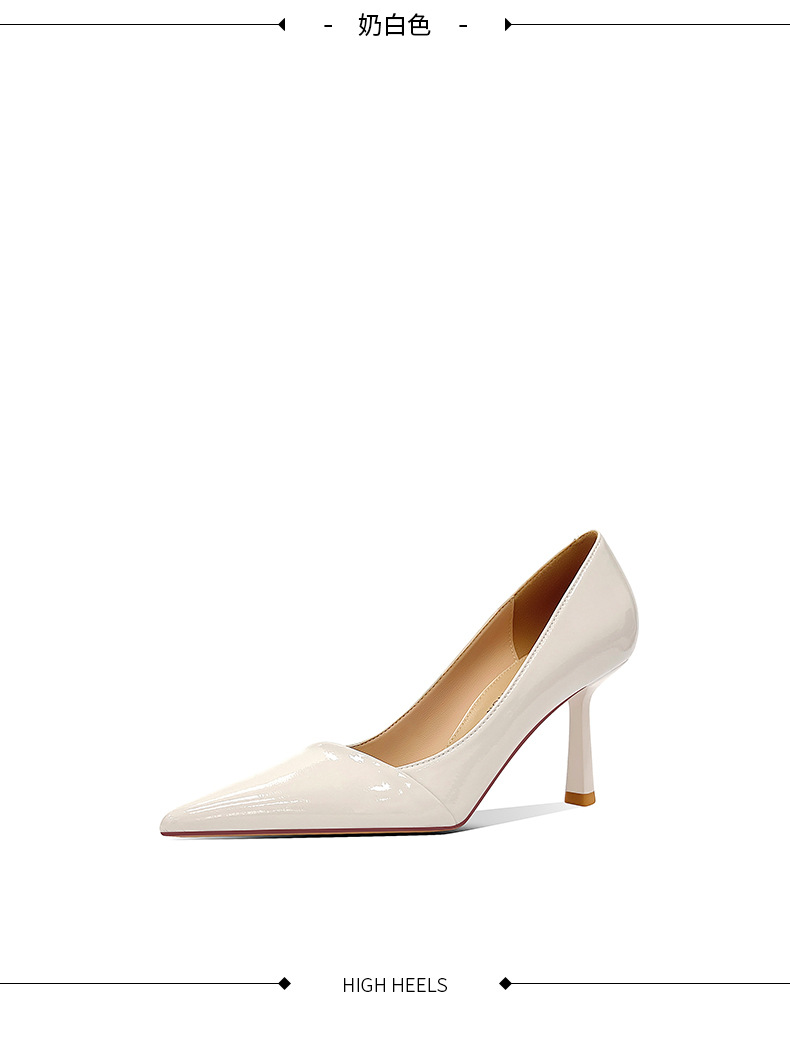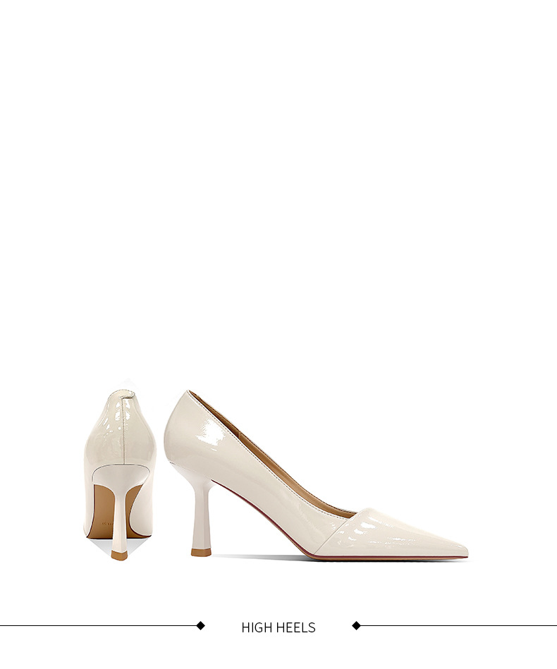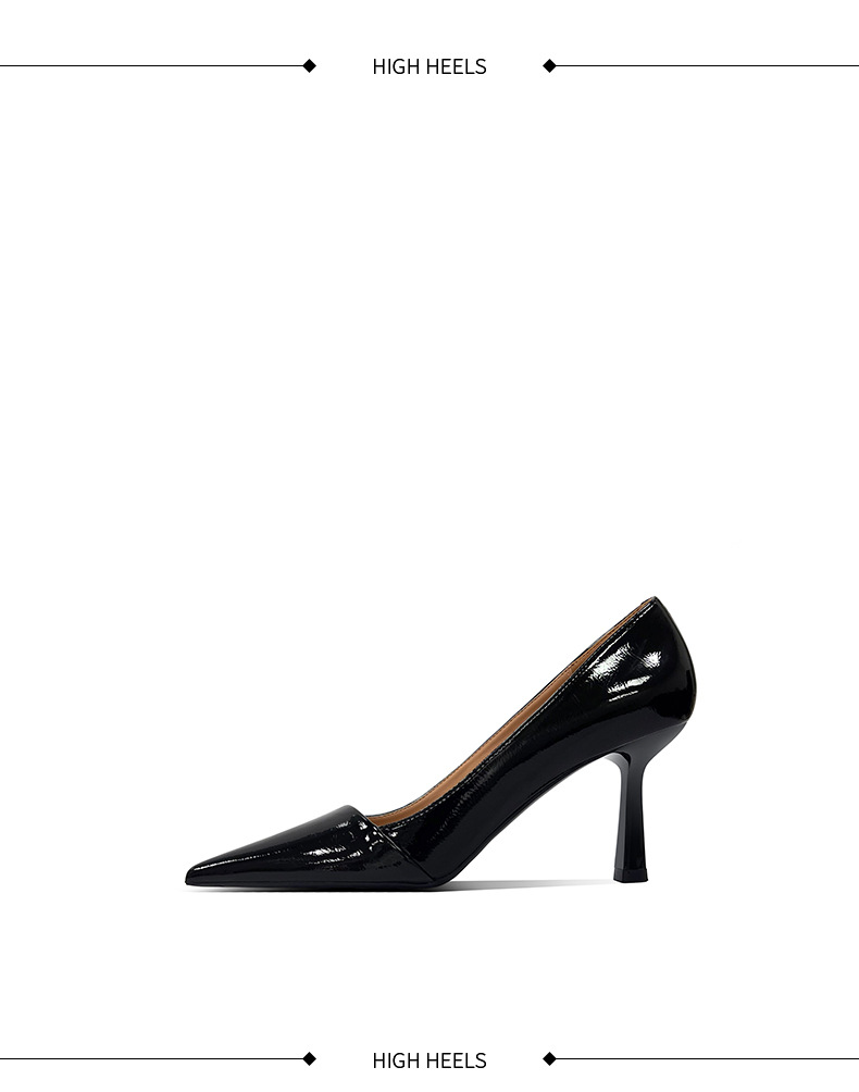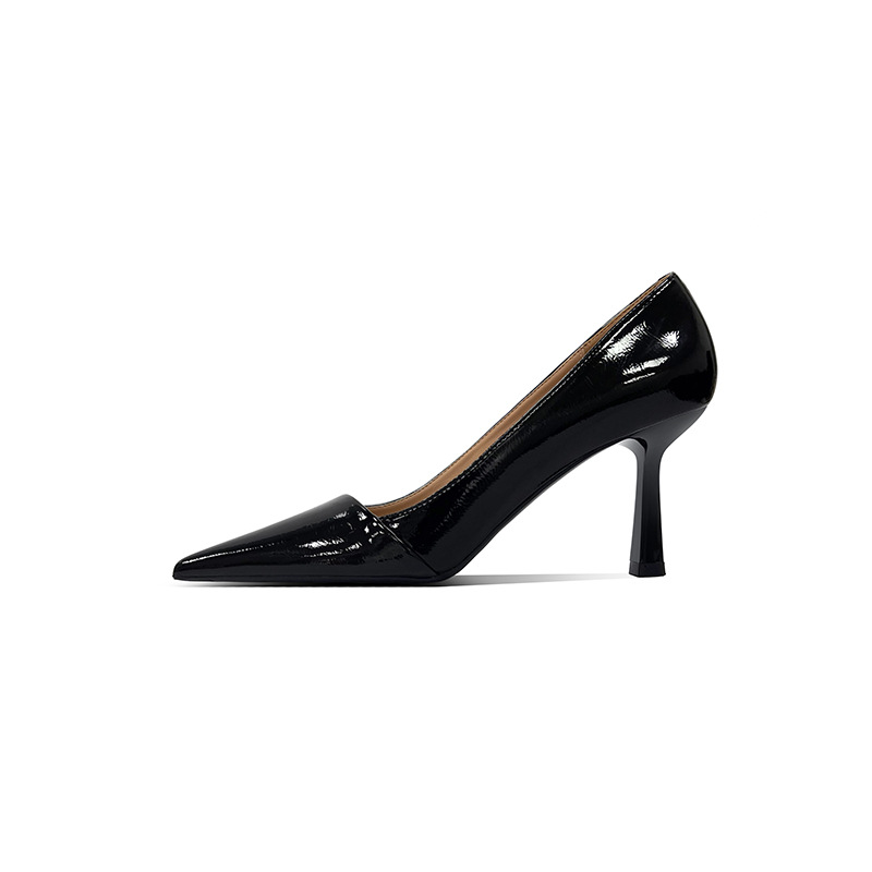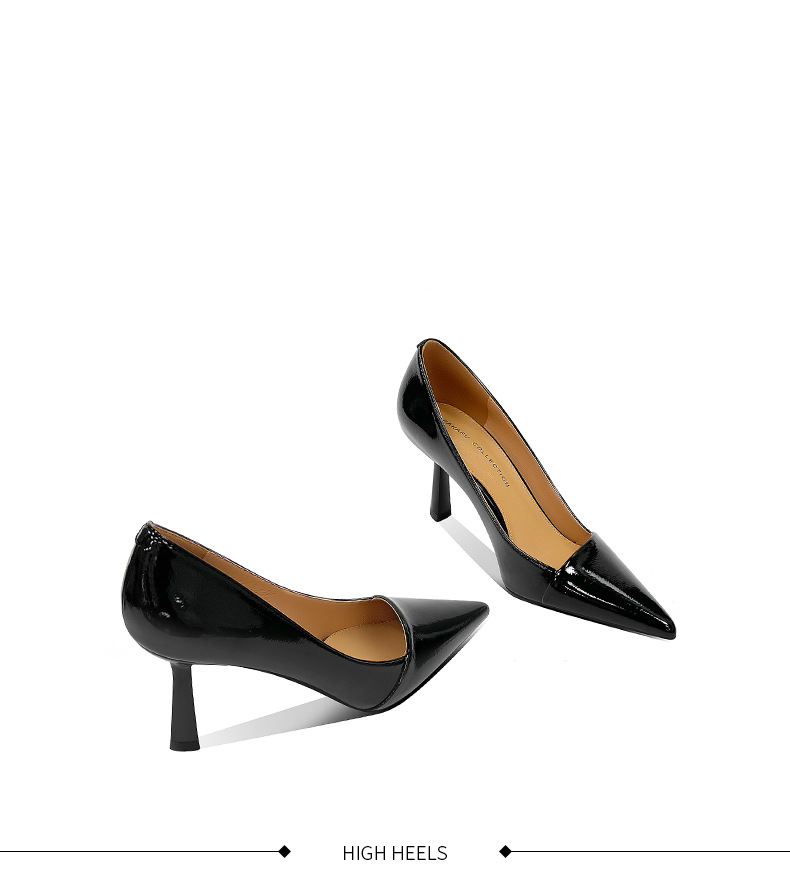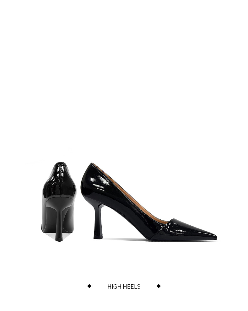 블랙 하이힐 여성 스틸레토 정품 가죽 2025 새로운 스타일 섹시하고 다재다능한 기질 뾰족한 작업 신발 전문 신발스토어 가기