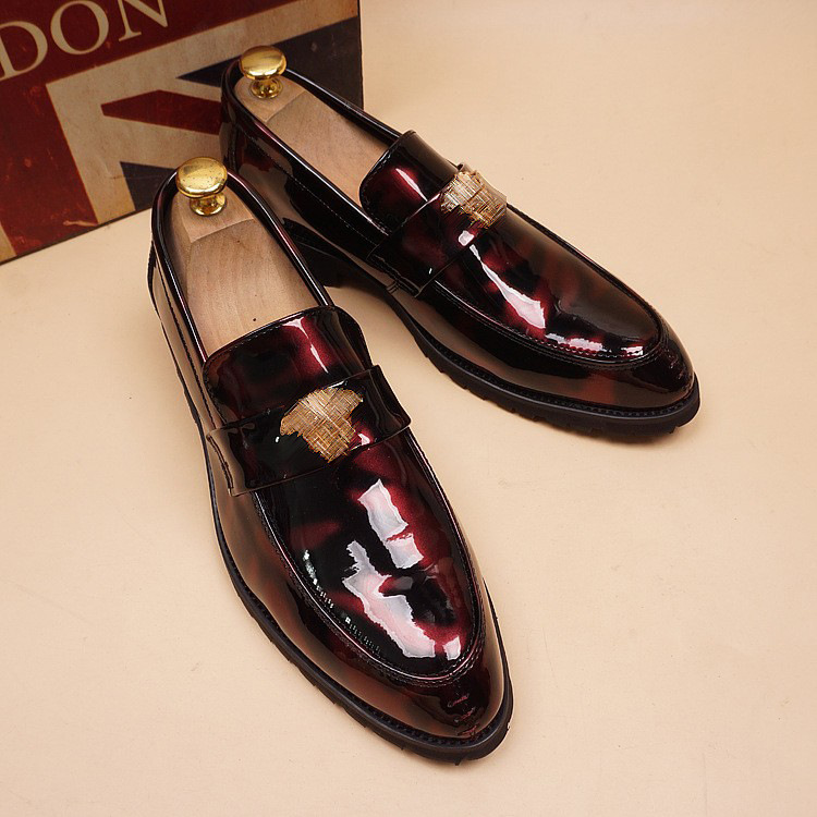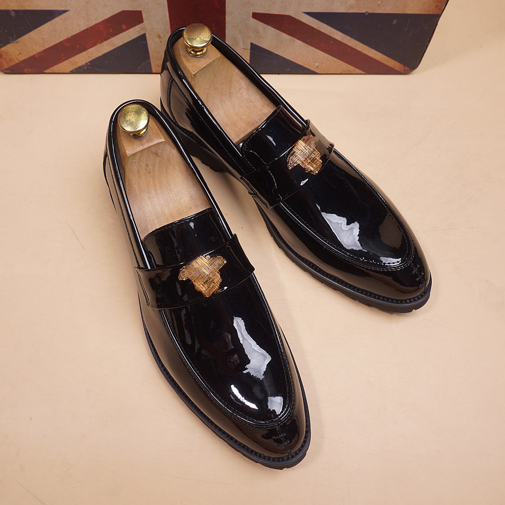 여름 신상 광택 가죽 한국 스타일 남성 뾰족코 가죽 신발 레트로 캐주얼 슈즈 키높이 슬립온 로퍼
