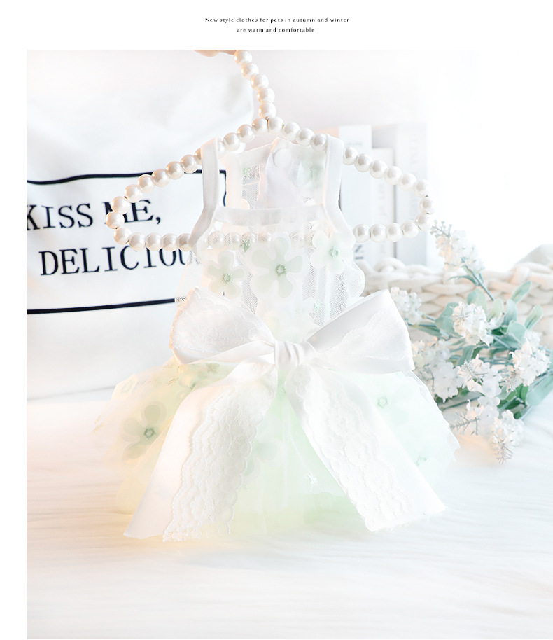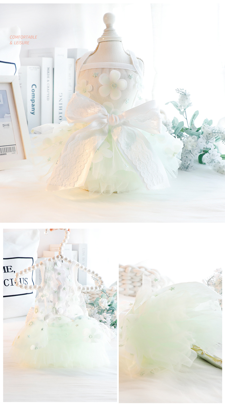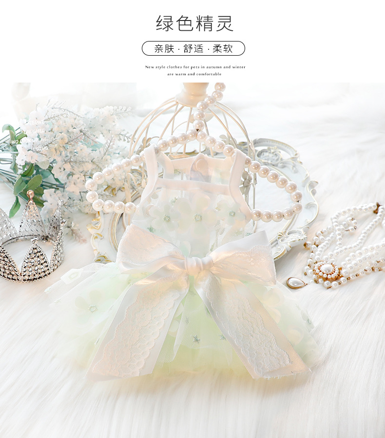 개 옷 여름 얇은 고양이 공주 원피스 녹색 엘프 결혼식 원피스 작은 개 테디 애완 동물 3668 도매스토어 가기