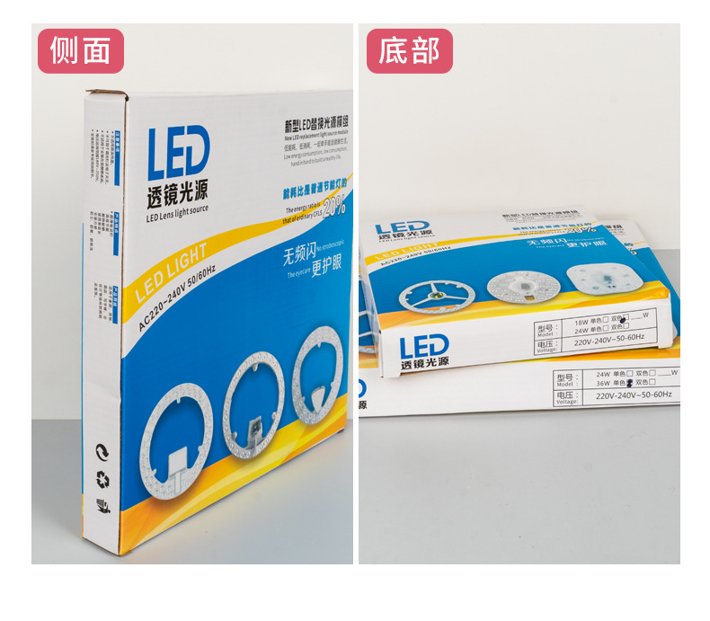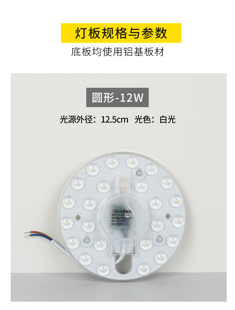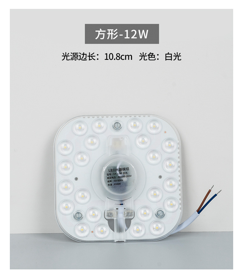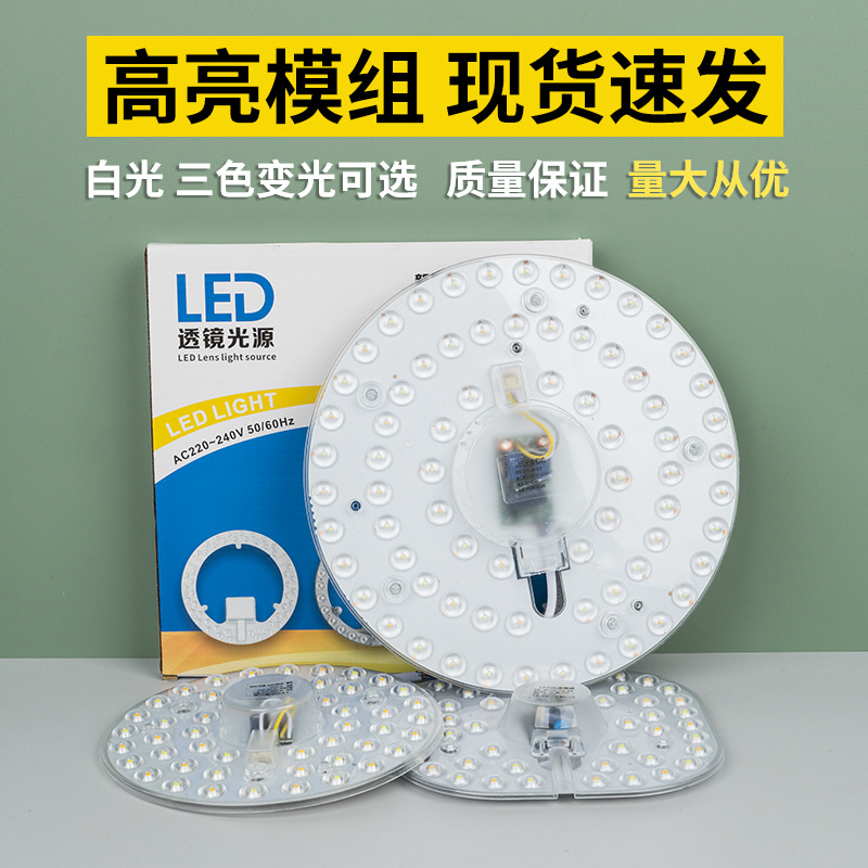 LED 광원 220V 가정용 거실 침실 천장 램프 심지 스퀘어 라운드 단색 3 색 렌즈 모듈