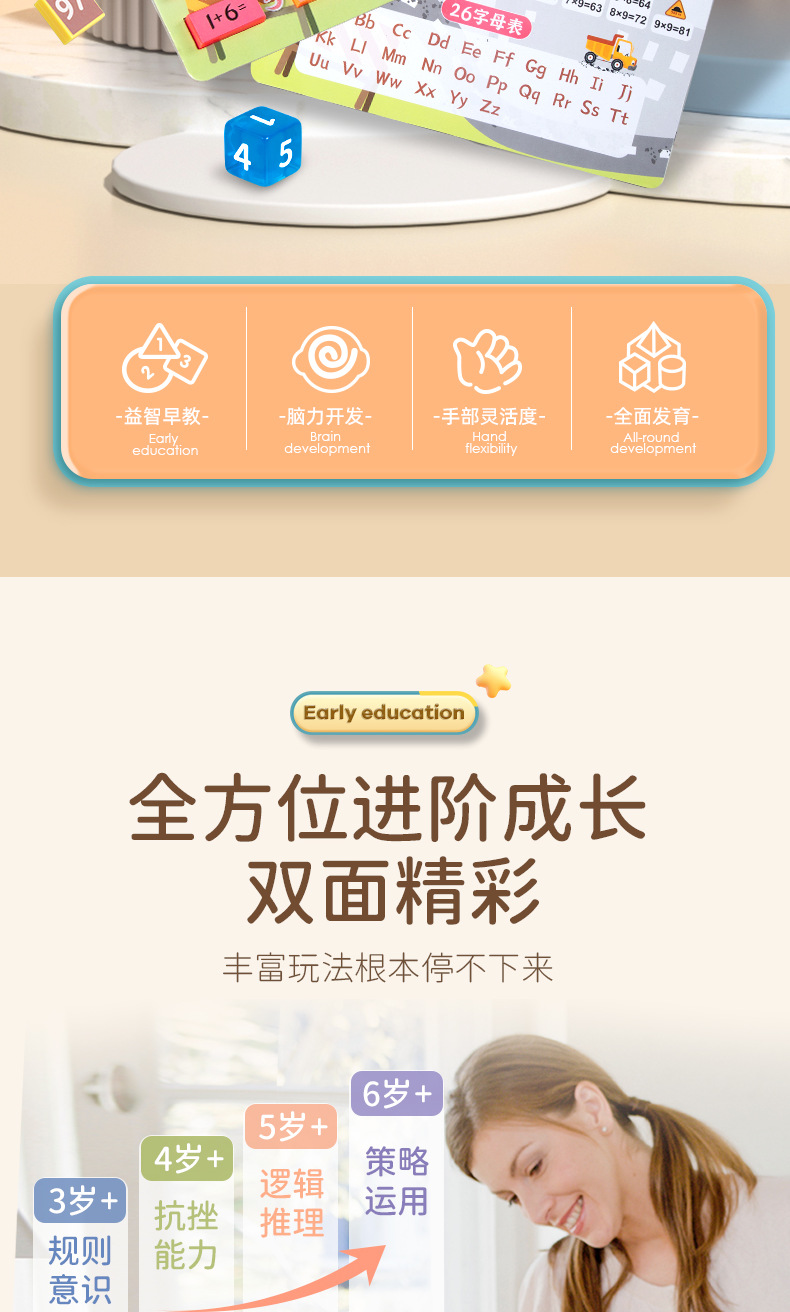 • 조기 교육 퍼즐 227 조각 [알파벳 + 곱셈표 + 수학] 컬러 박스
