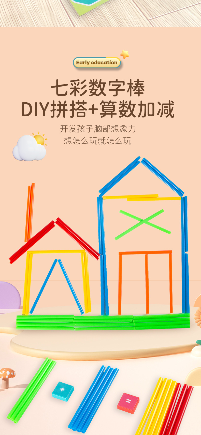 보드 어린이 수학 몬테소리 교구 산수 계발 덧셈과 뺄셈 아티팩트 1,2 학년 교육용 완구 수백 개 도매