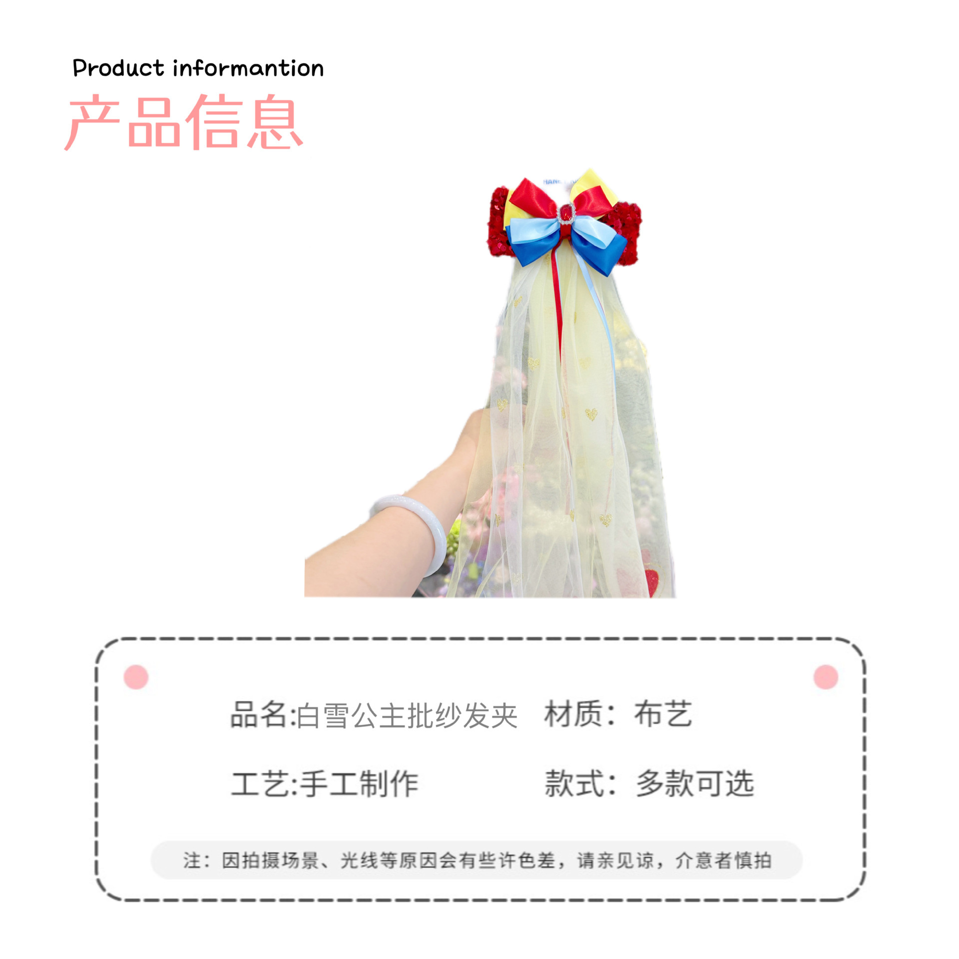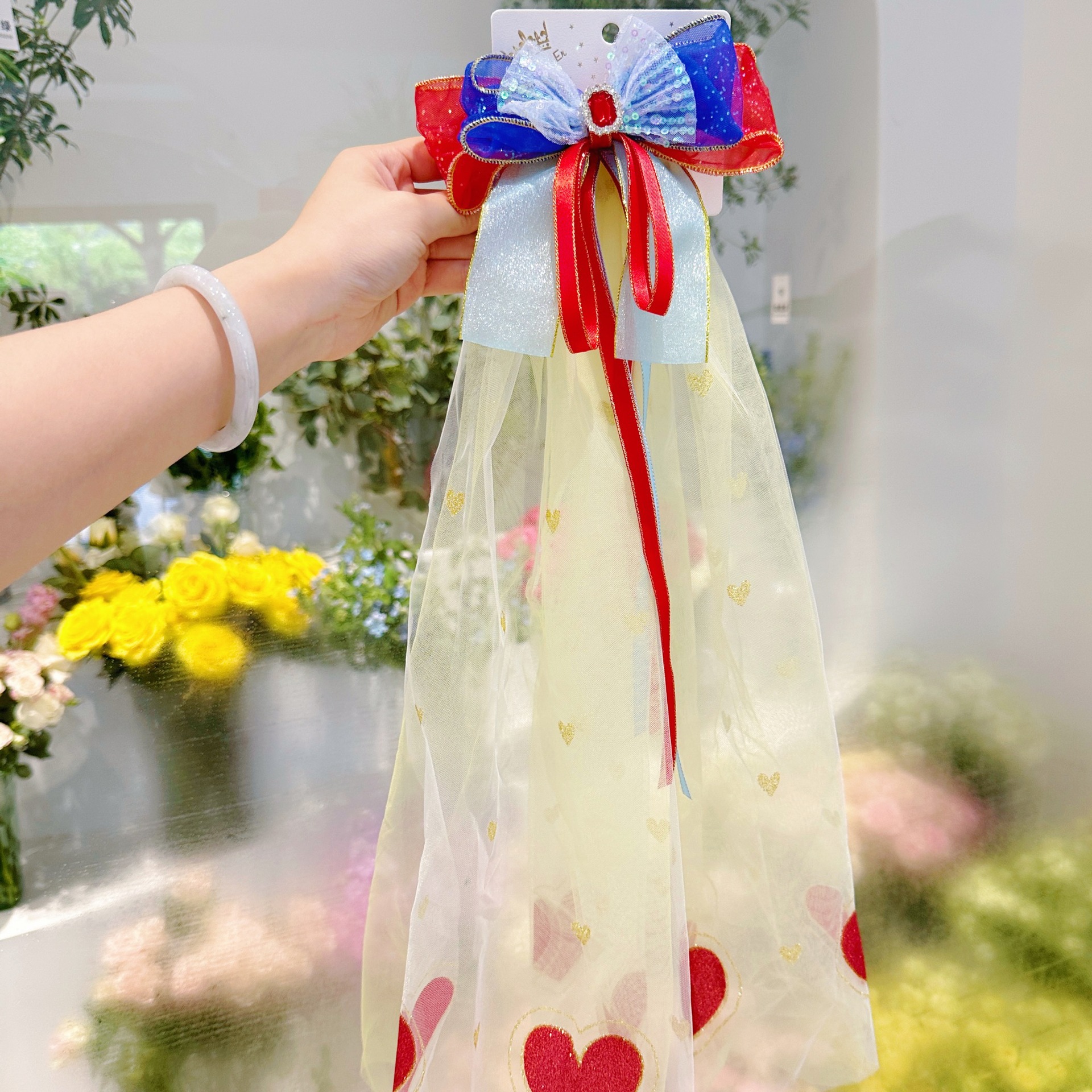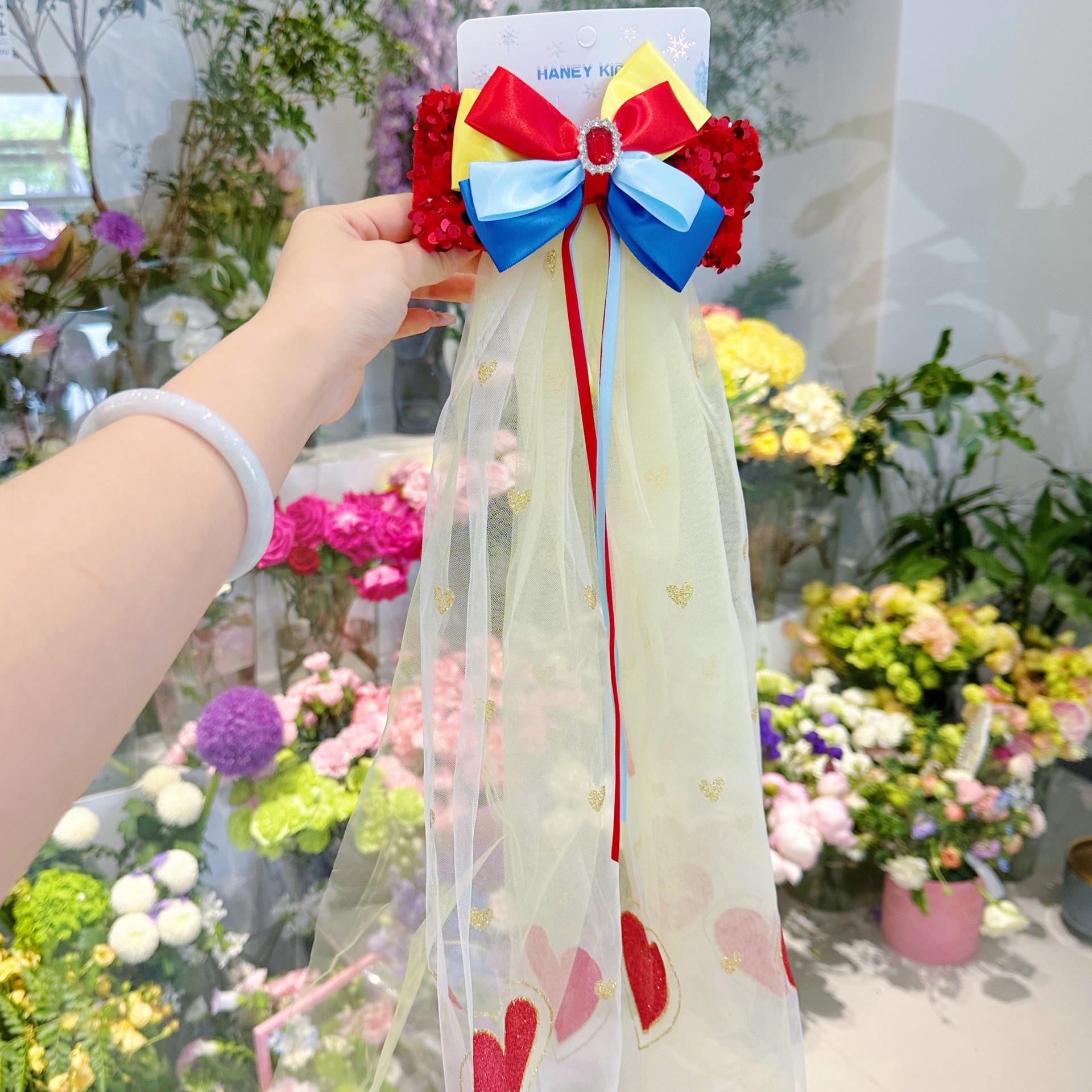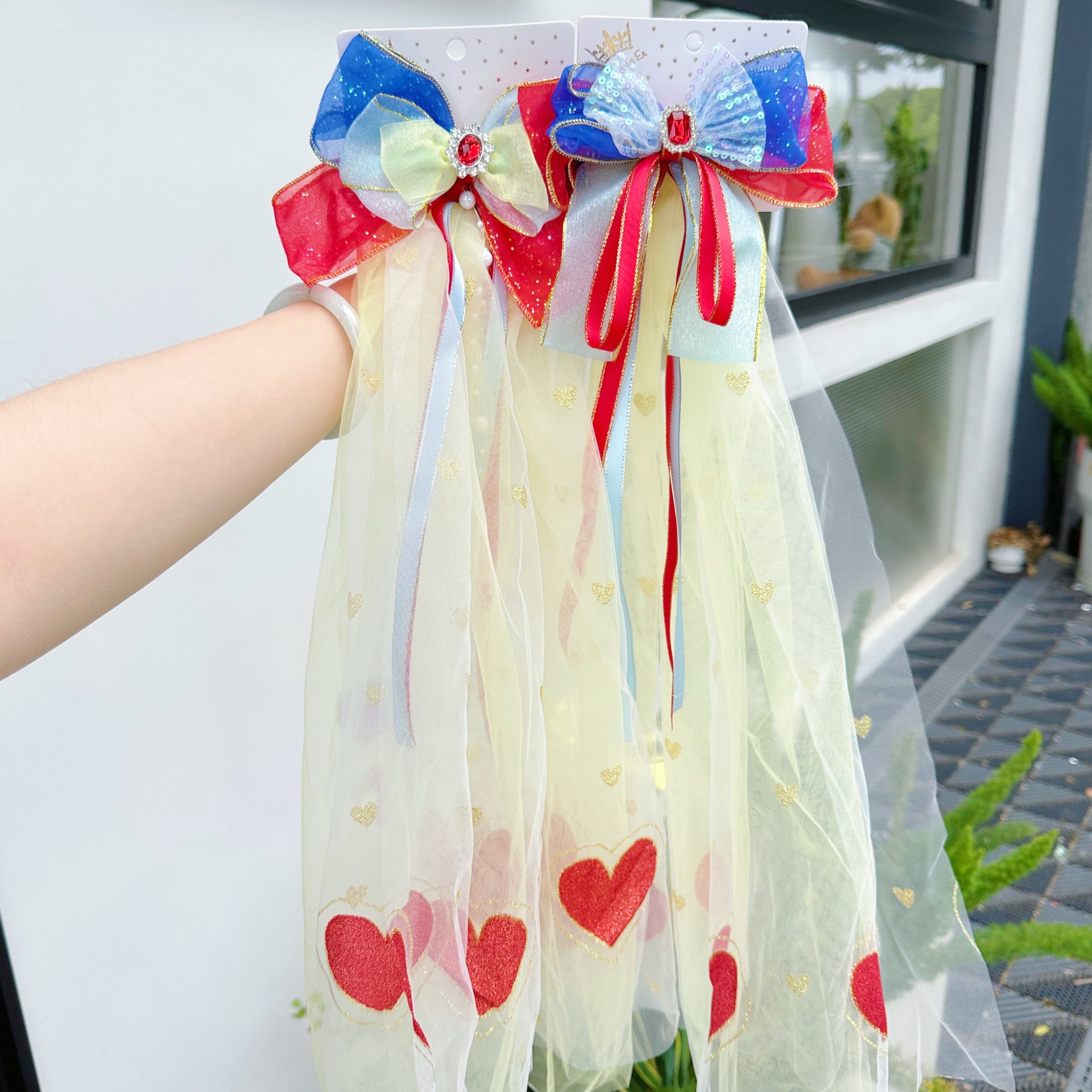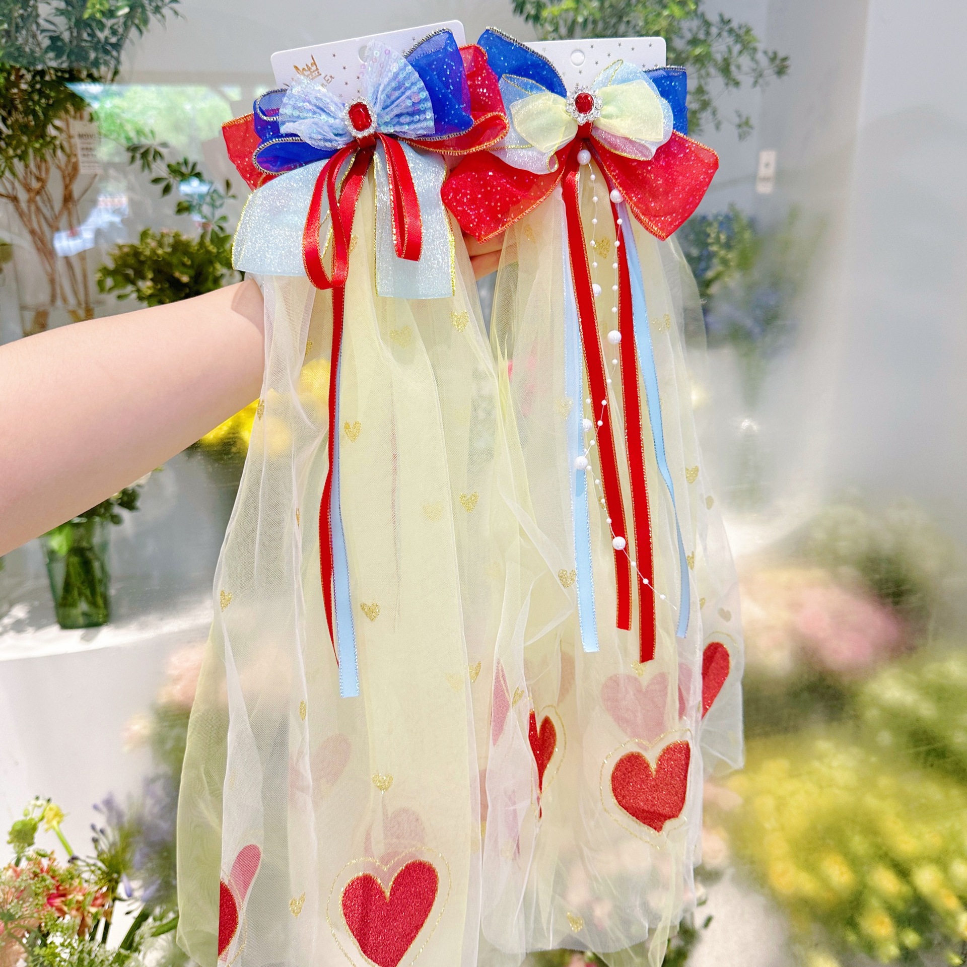 어린이 머리핀 백설 공주 메쉬 활 리본 어린 소녀의 머리핀 수제 절묘한 어린이 헤어 액세서리