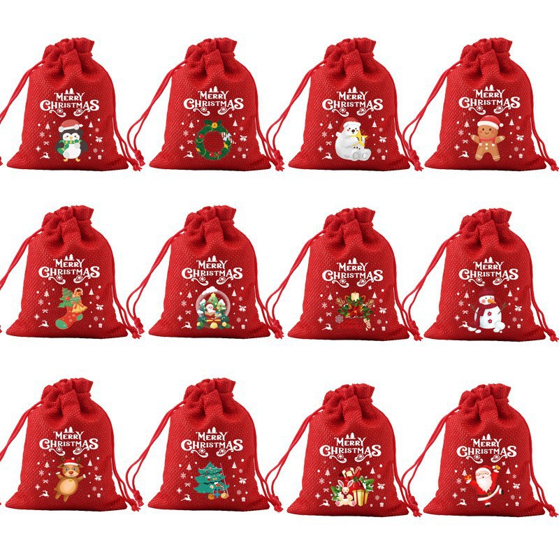 국경 크리스마스 스파크 백 아마존 번들 입 컬러 만화 크리스마스 세트 24 사탕 선물 포장 가방스토어 가기