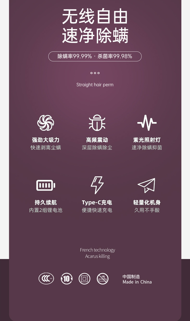 크로스 보더 Acarizer 침대 비트 Acarite 제거 유물 UV 살균 기계 무선 Acarite 제거 기계 휴대용 진공 청소기스토어 가기