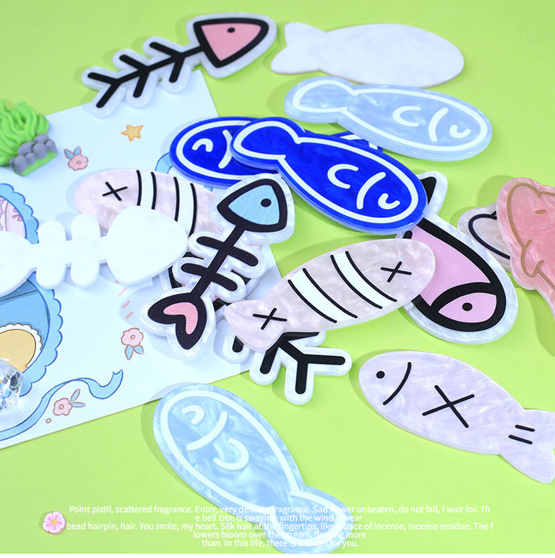 오션 시리즈 작은 물고기 뼈 헤어 클립 아크릴 액세서리 소녀의 앞머리 클립 헤어 클립 도파민 클립스토어 가기