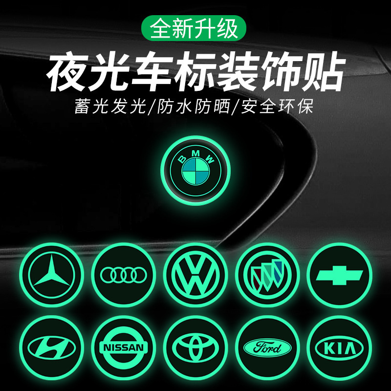새로운 빛나는 자동차 라벨 커버 도어 보울 연료 탱크 커버 휠 허브 발광 경고 에폭시 C 컬럼 사이드 리어 윈도우 무료 스티커스토어 가기