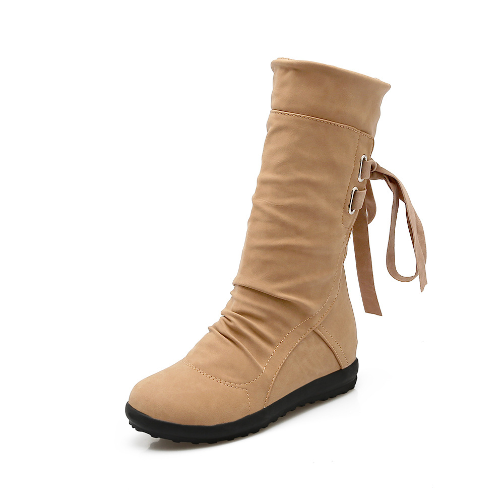 유럽과 미국 마틴 부츠와 발목 부츠 가을과 겨울 라운드 발가락 짧은 부츠 레이스 업 여성 부츠 40414243 플러스 사이즈
