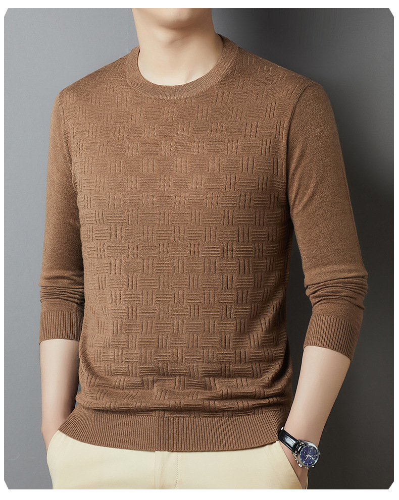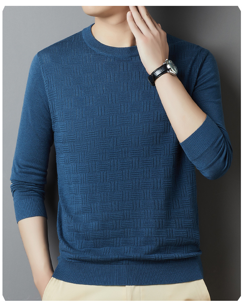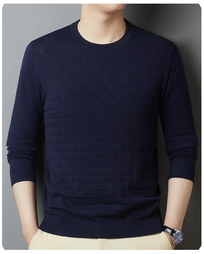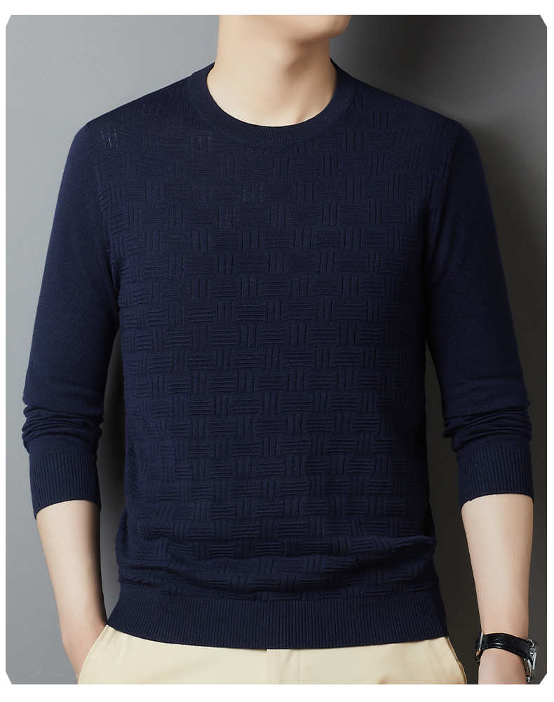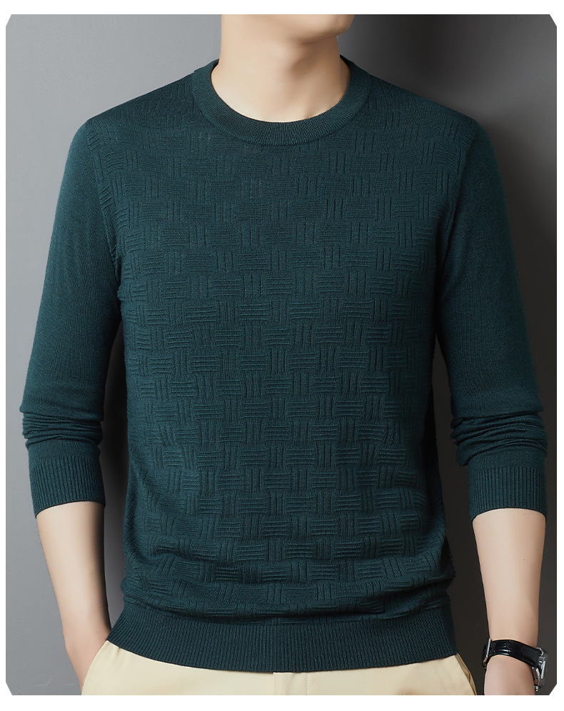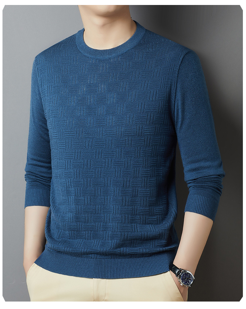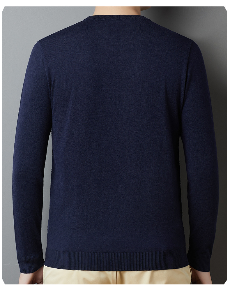 남자의 가을 옷 얇고 따뜻한 중년 및 젊은 나이베이스 자카드 니트웨어 라운드 넥 스웨터 긴 소매 남성 니트웨어스토어 가기