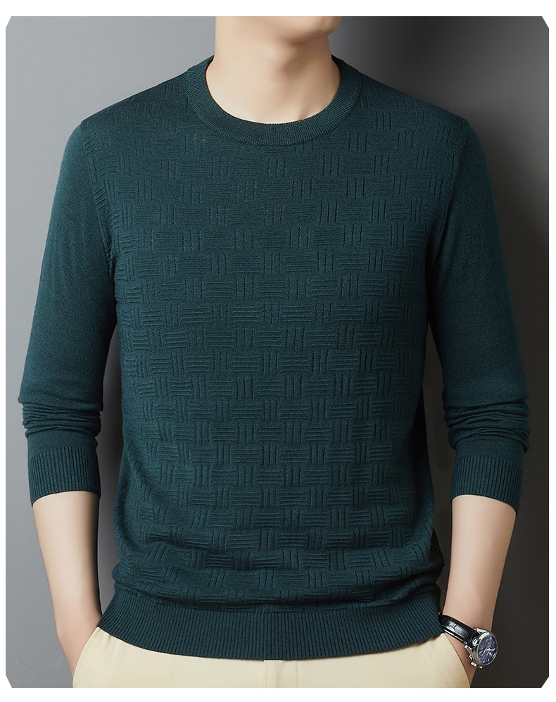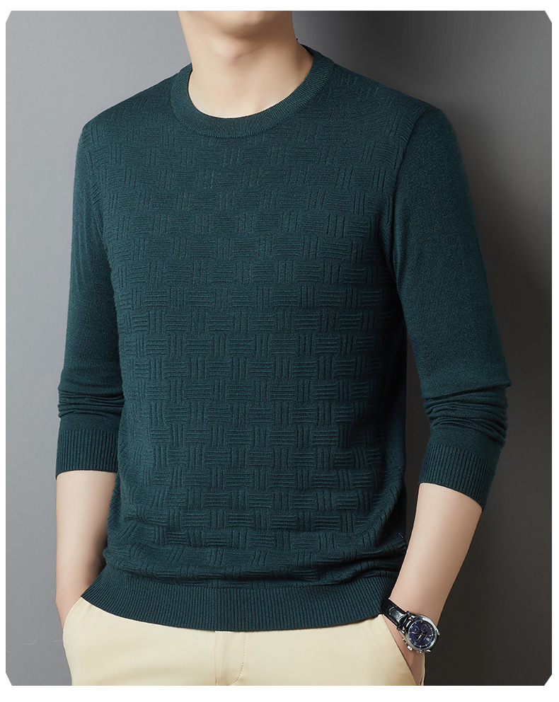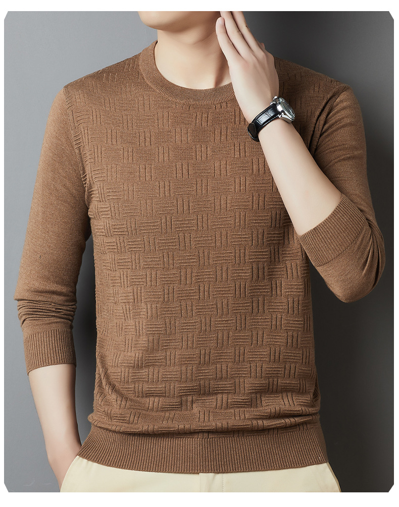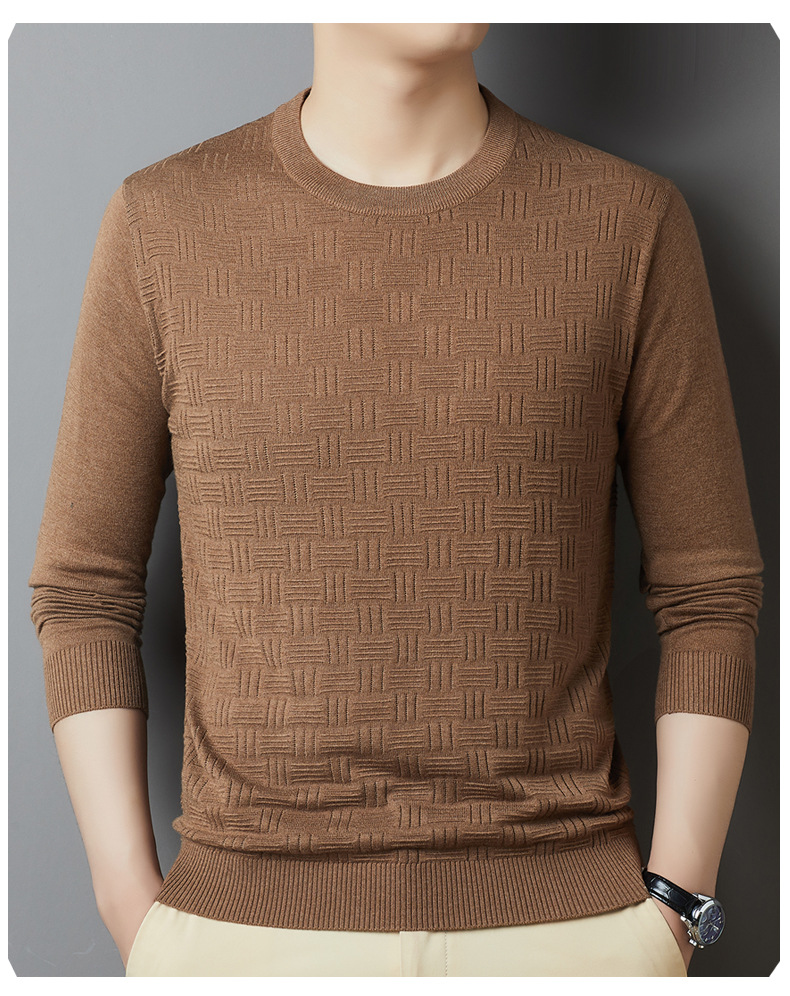 남자의 가을 옷 얇고 따뜻한 중년 및 젊은 나이베이스 자카드 니트웨어 라운드 넥 스웨터 긴 소매 남성 니트웨어
