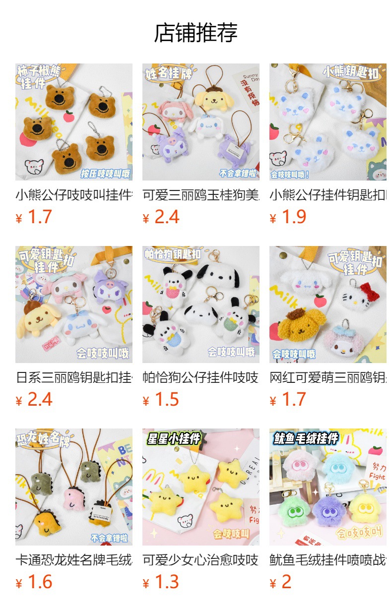 만화 봉제 펜던트 귀여운 곰 인형 개구리 고양이 토끼 소녀 하트 키 체인 가방 펜던트스토어 가기
