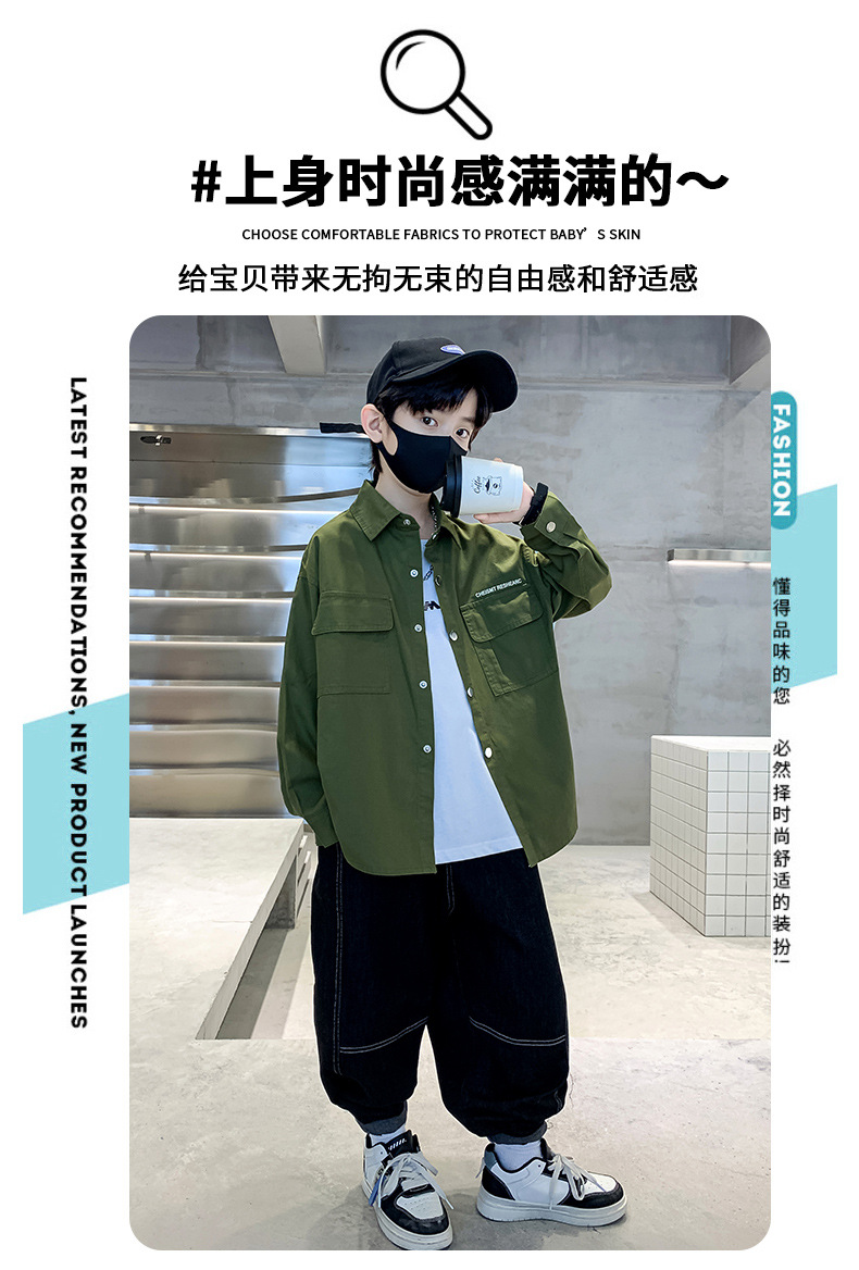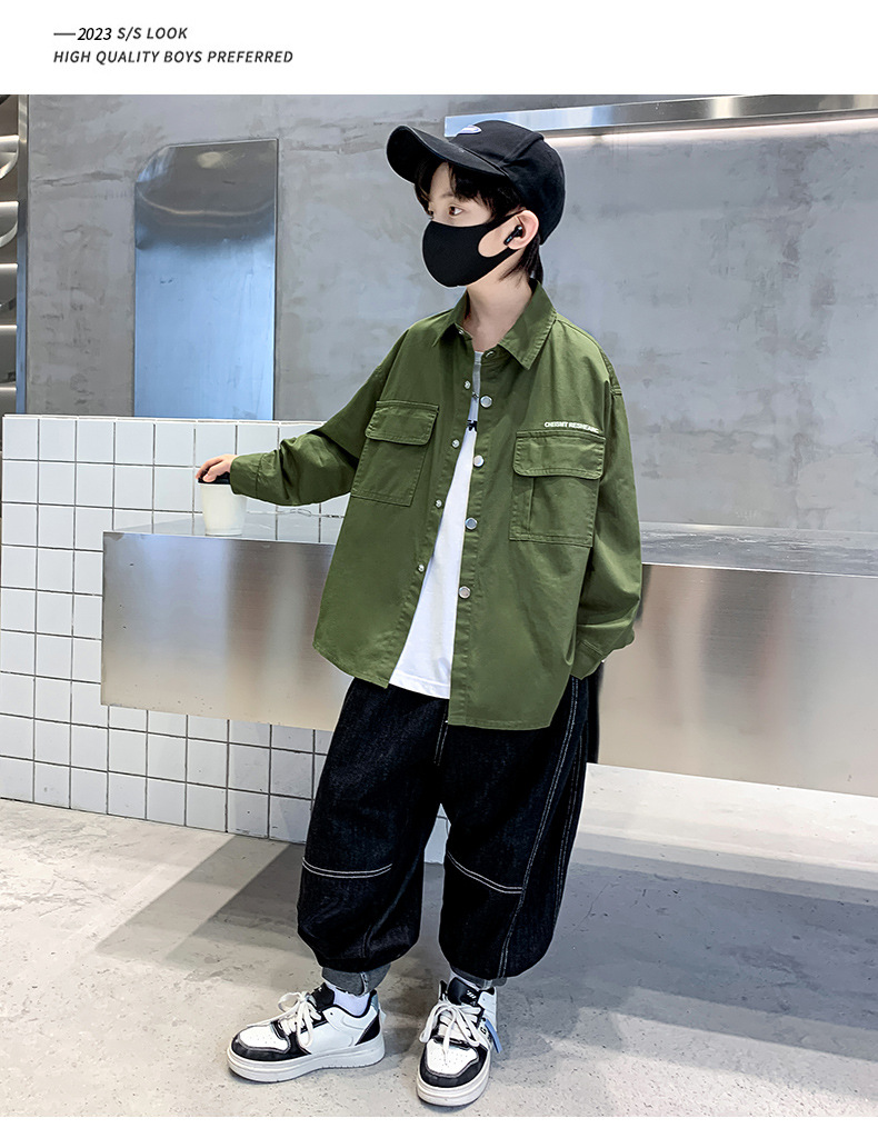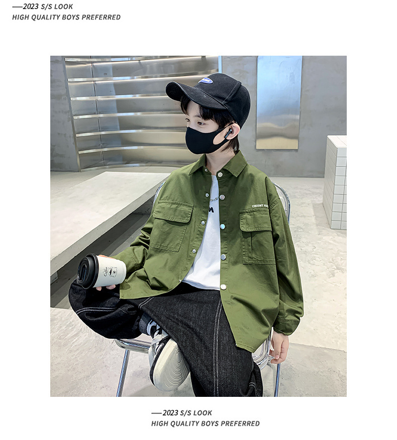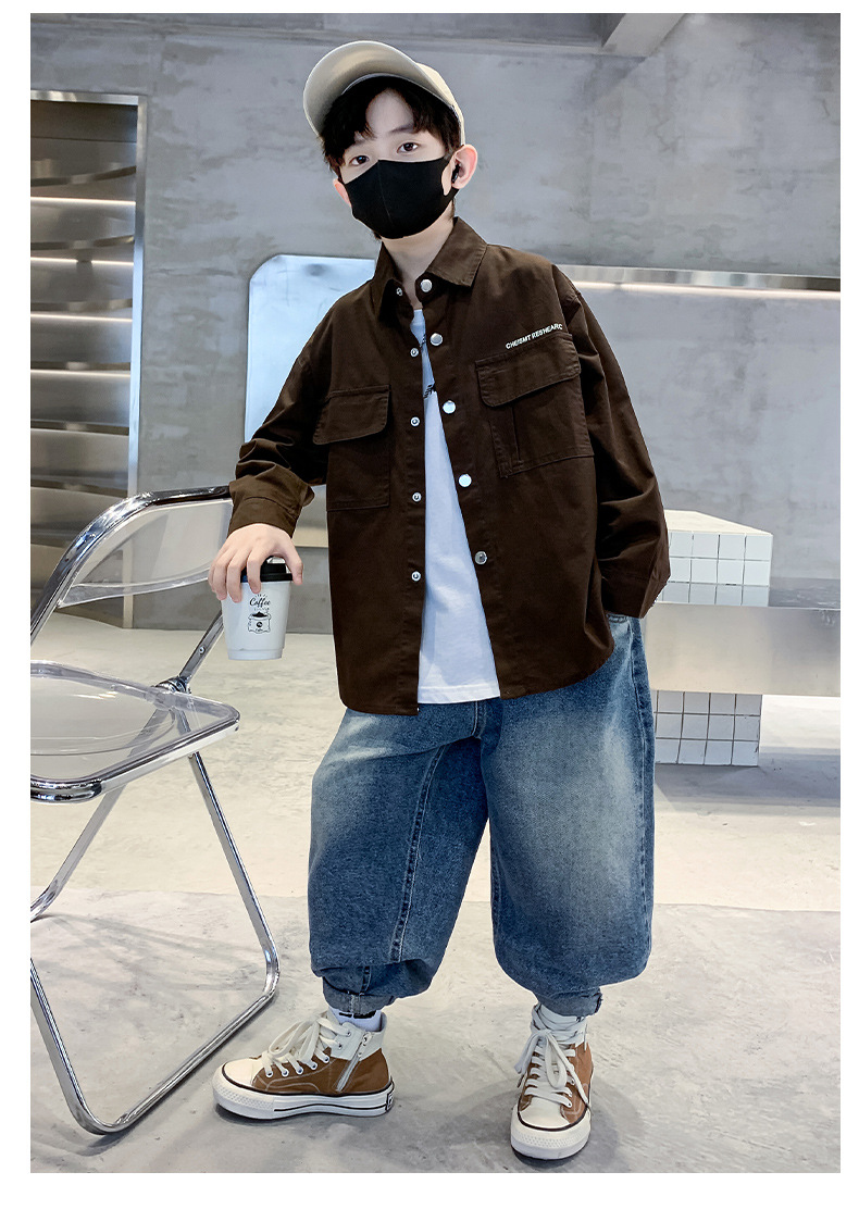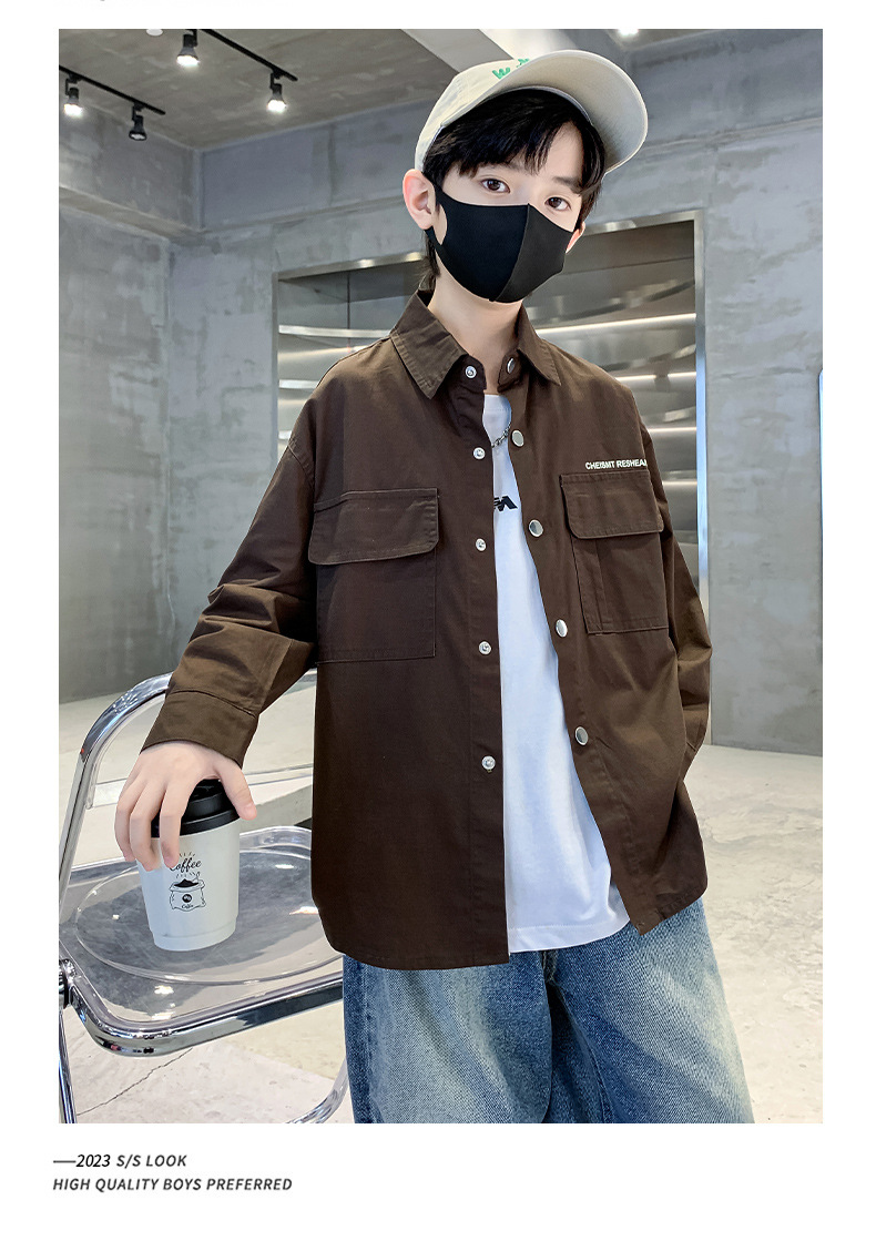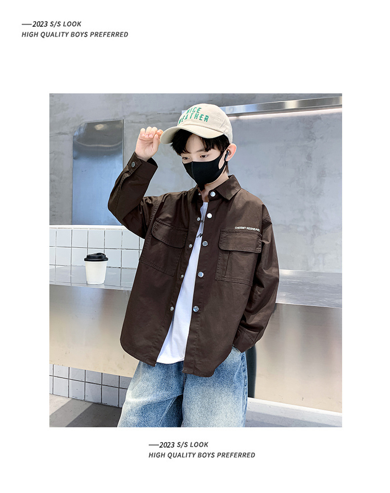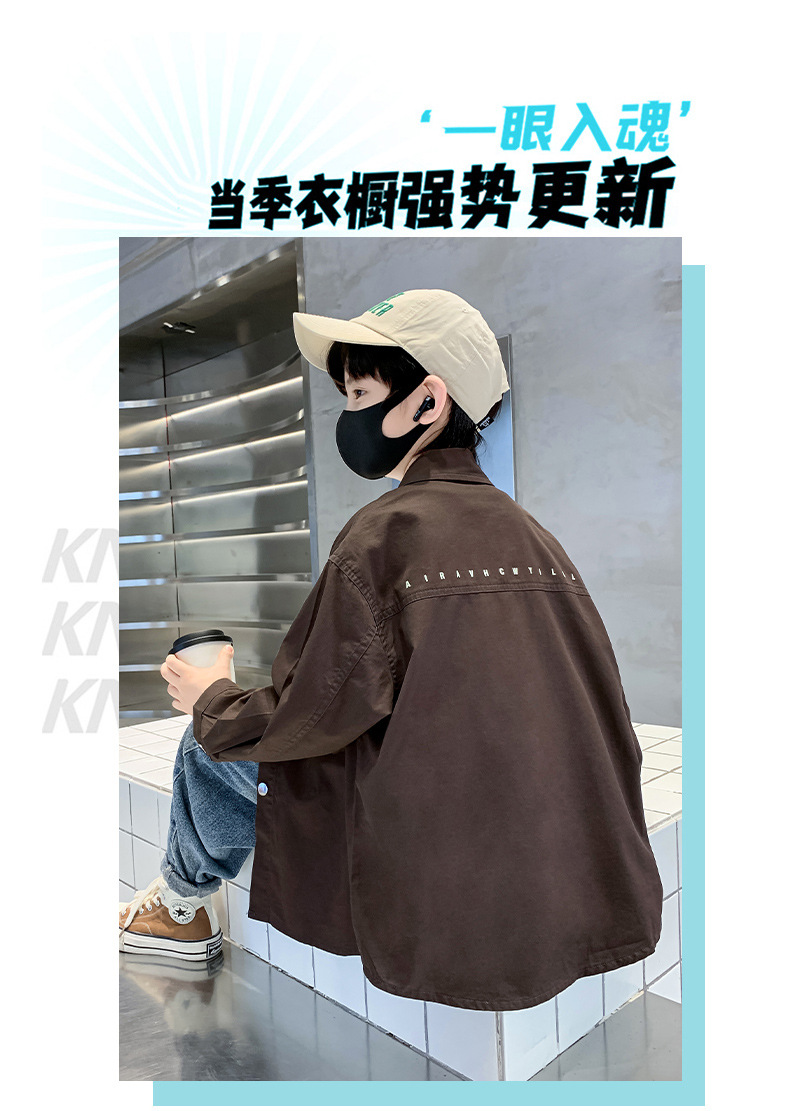 소년 가을 의류 브라운 워크 셔츠 봄, 가을 2025 새로운 어린이 봄 셔츠 잘 생긴 한국 스타일 유행스토어 가기