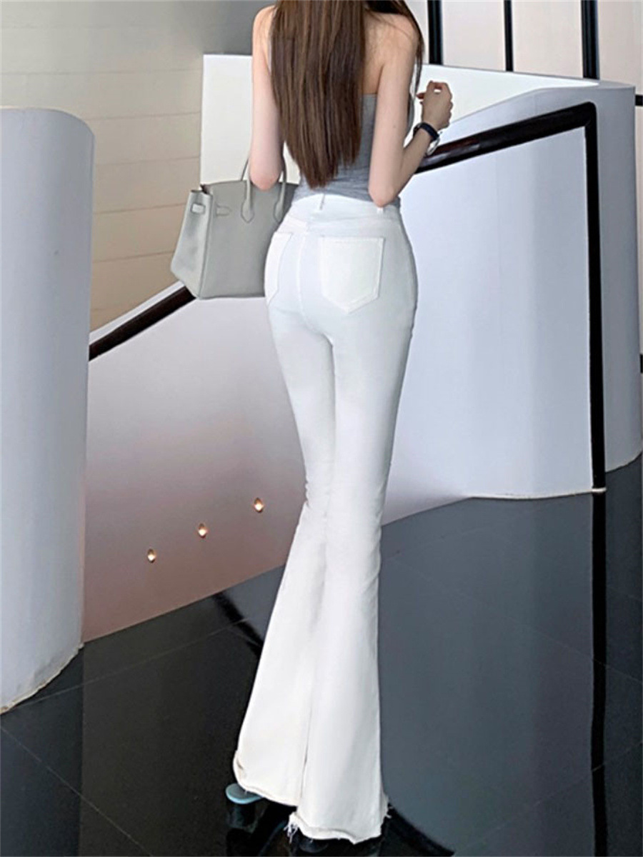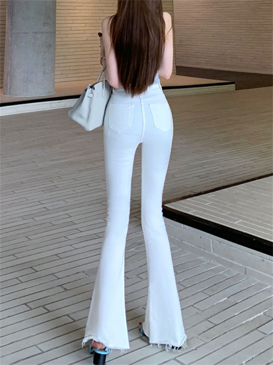 부티 레그 팬츠 2.0 화이트 슬림핏 슬리밍 모든 경기 유행 젠틀 스타일 하이 웨이스트 플레어 팬츠 여성용 청바지