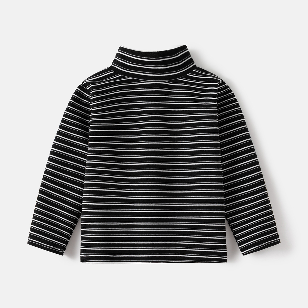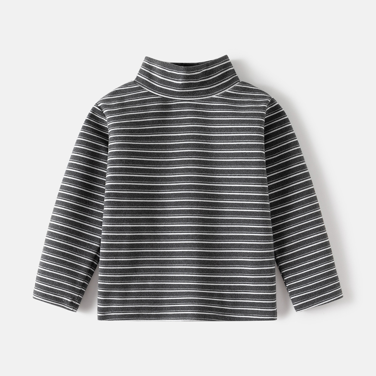 남자의 아기 줄무늬 간단한 티셔츠 가을과 겨울 새로운 따뜻한 벨벳 긴 소매 캐주얼 패션 어린이 하이 칼라 베이스 셔츠