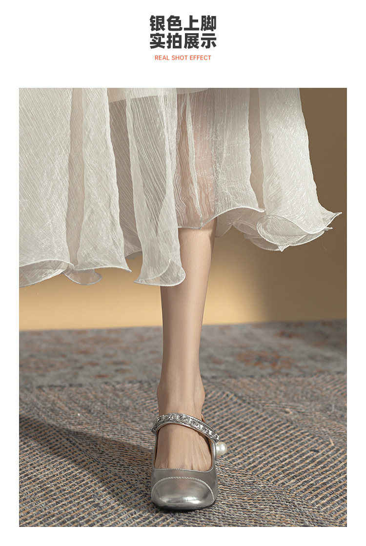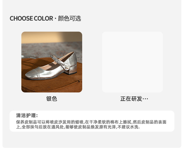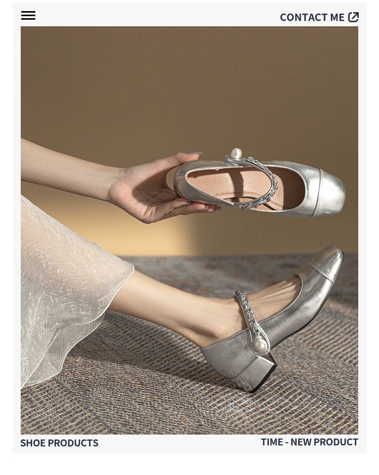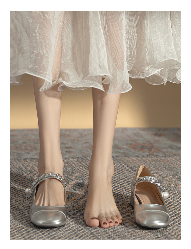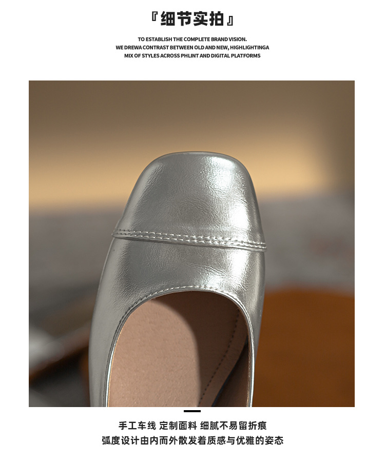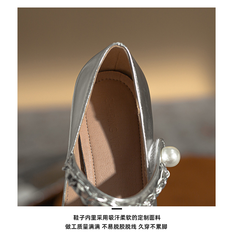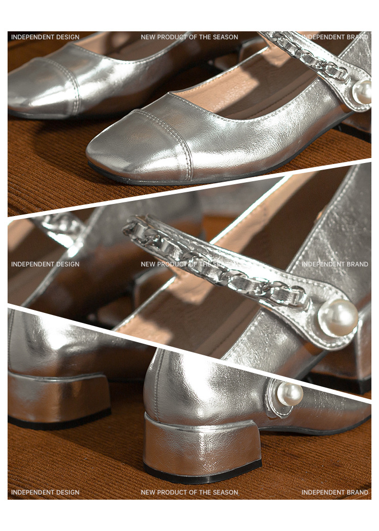 실버 두꺼운 굽 프렌치 스타일 라운드 토 메리제인 2024 가을 여성용 슈즈, 다용도 얕은 굽 싱글 슈즈, 레트로 가죽 슈즈스토어 가기
