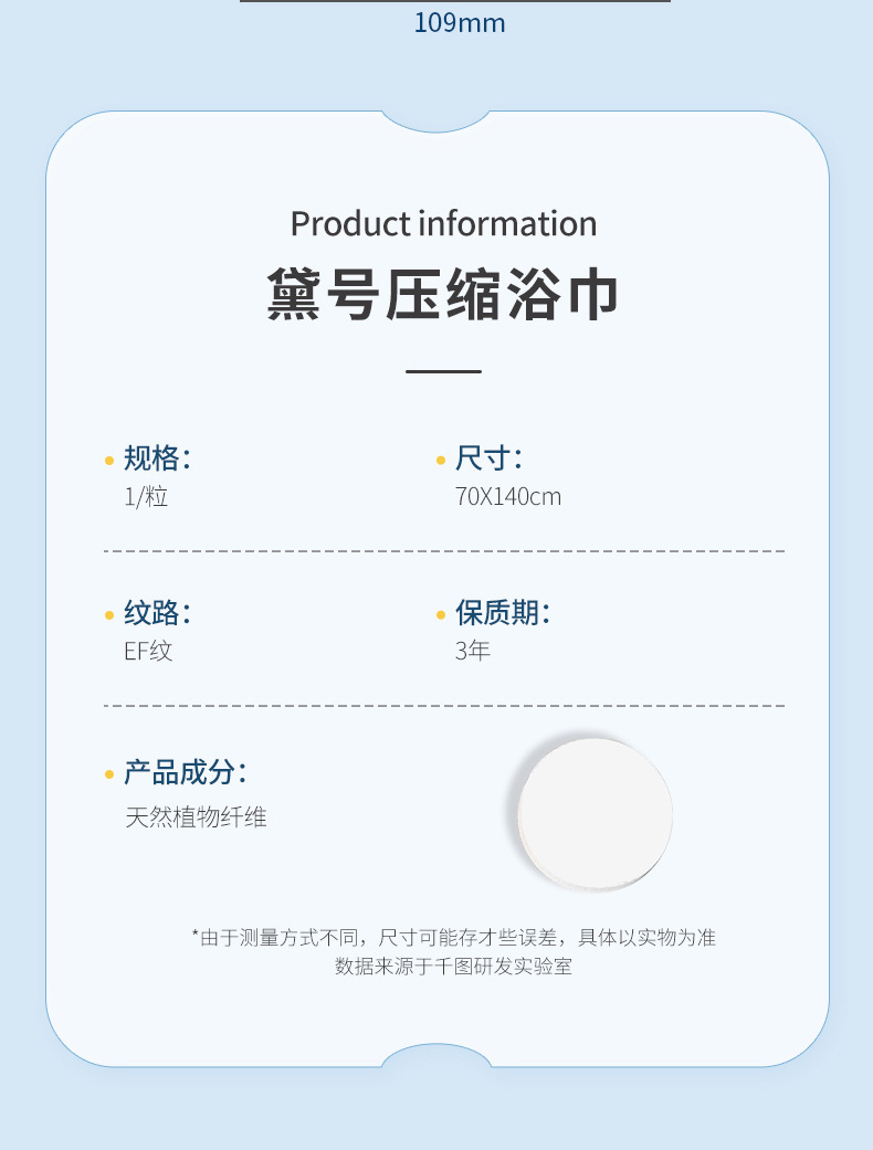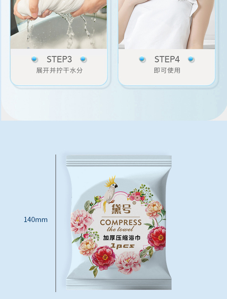 • 다이후아 페어리 70*140 압축 목욕타월 (1 팩)