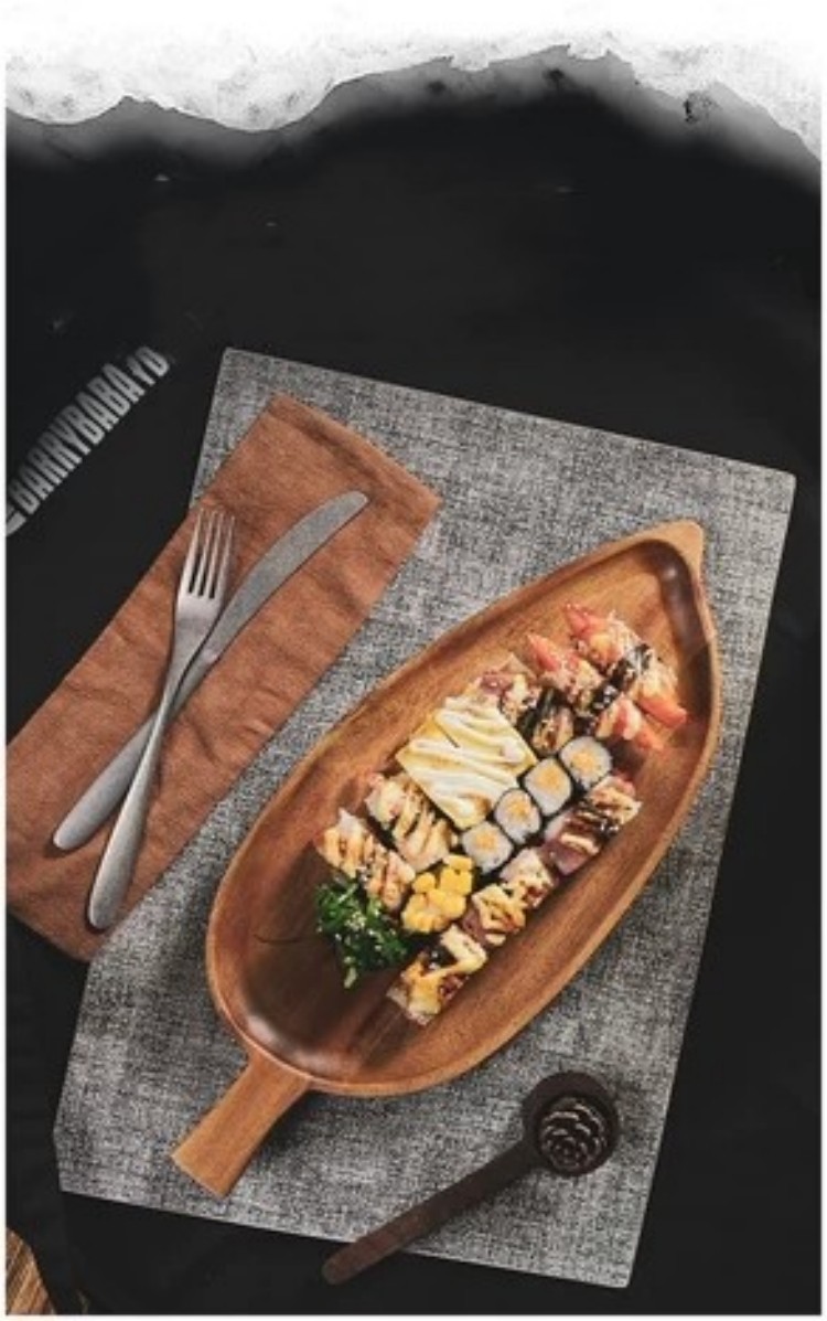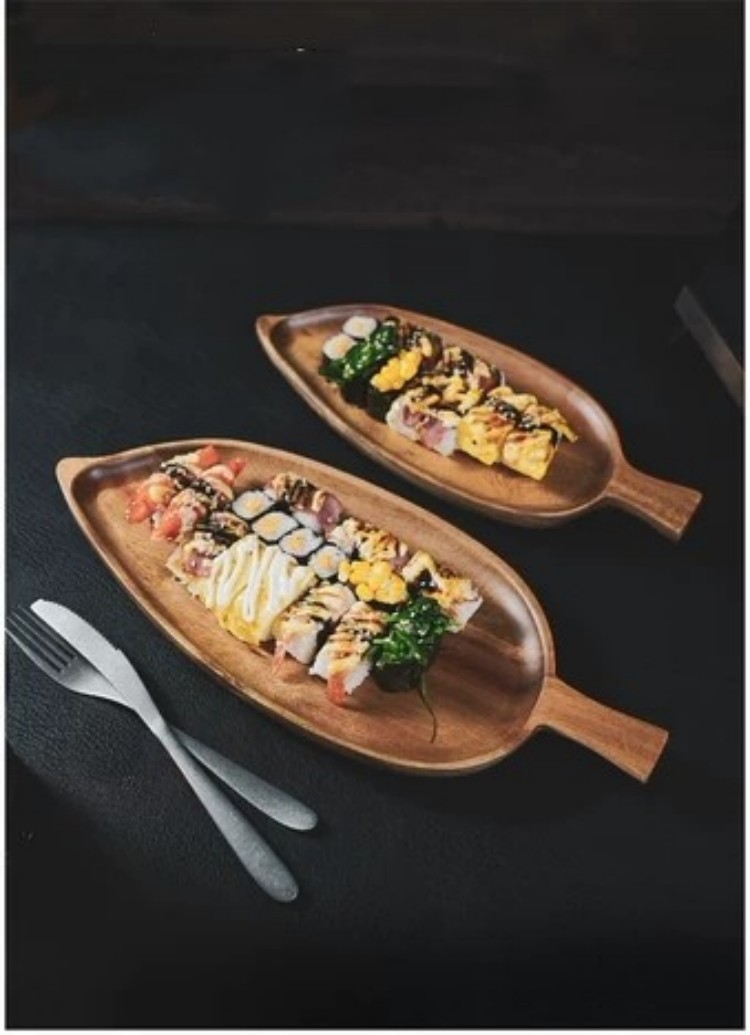 일본식 고가 나무 쟁반 오후 차 간식 초밥 접시 잎 모양의 디너 플레이트 아카시아 우드 티 플레이트스토어 가기