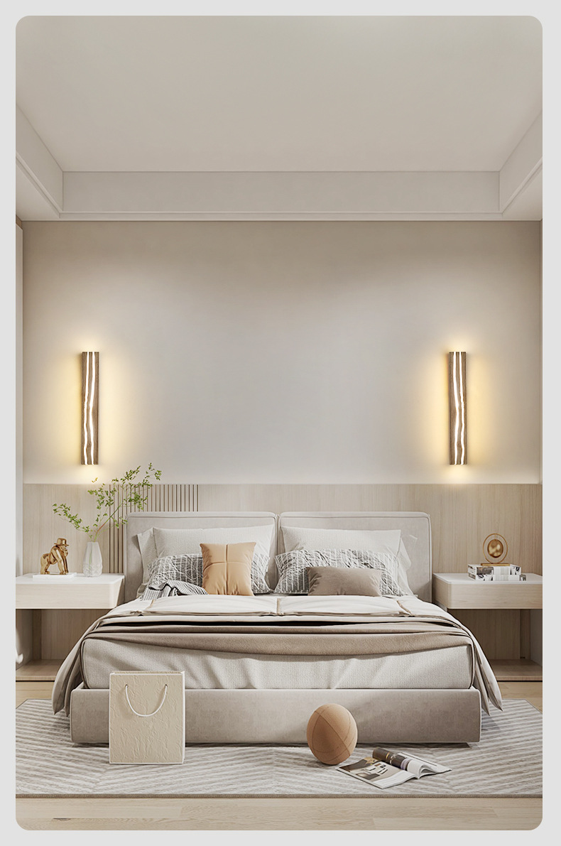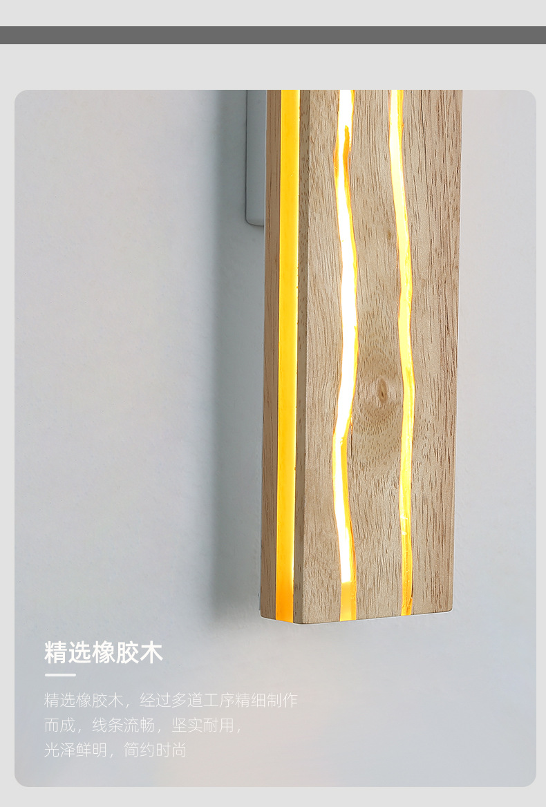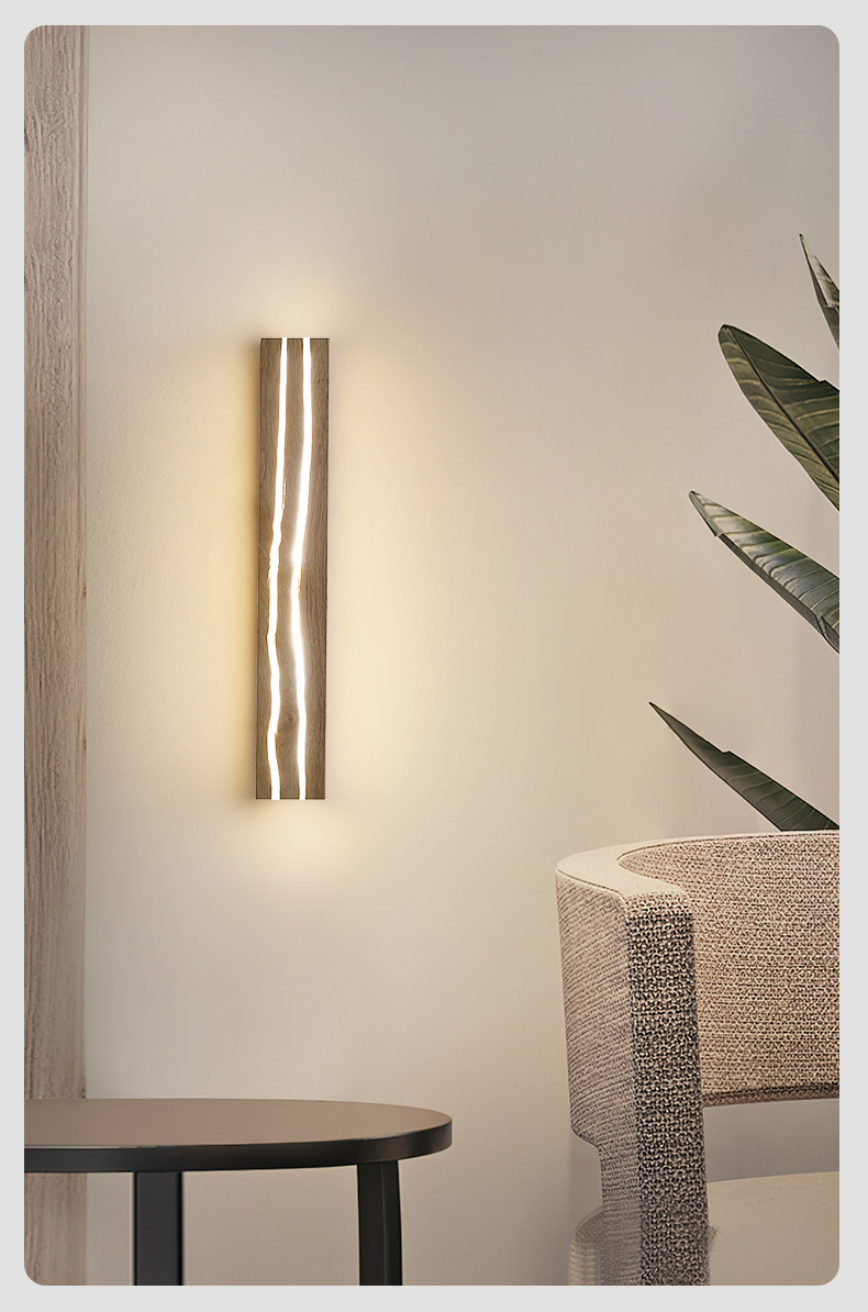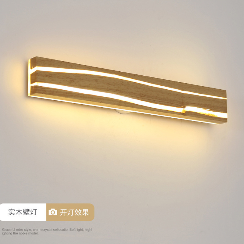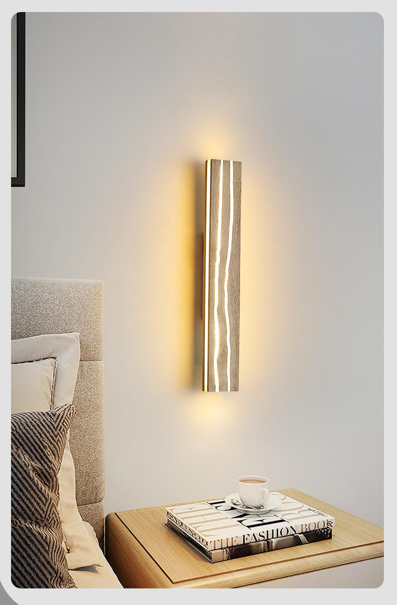 북유럽 단단한 나무 균열 창조적 인 벽 램프 침실 침대 옆 램프 일본식 로그 배경 벽 LED 스트립 벽 램프스토어 가기