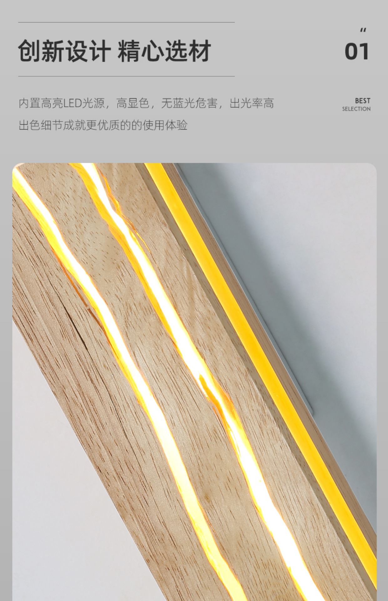 북유럽 단단한 나무 균열 창조적 인 벽 램프 침실 침대 옆 램프 일본식 로그 배경 벽 LED 스트립 벽 램프
