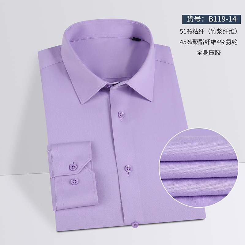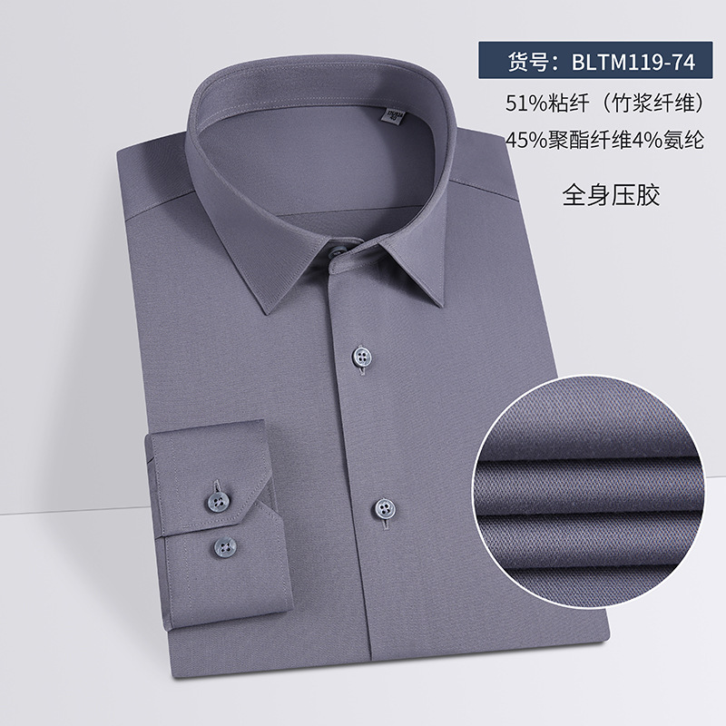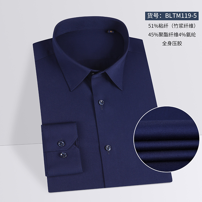 50 대나무 섬유 봄과 가을 전신 접착 사업 남자의 긴 소매 셔츠 드레이핑 통기성 플러스 사이즈 남성 셔츠