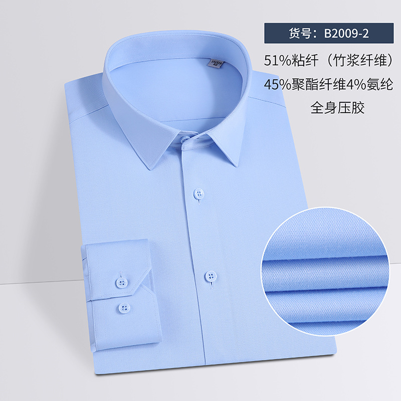 50 대나무 섬유 봄과 가을 전신 접착 사업 남자의 긴 소매 셔츠 드레이핑 통기성 플러스 사이즈 남성 셔츠스토어 가기