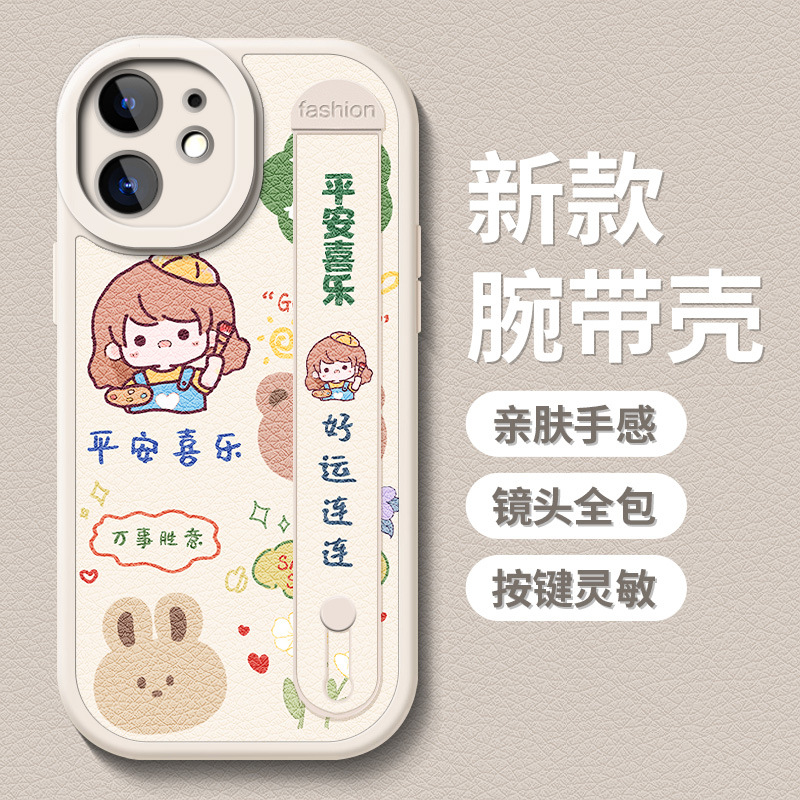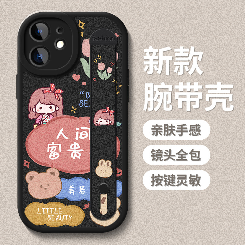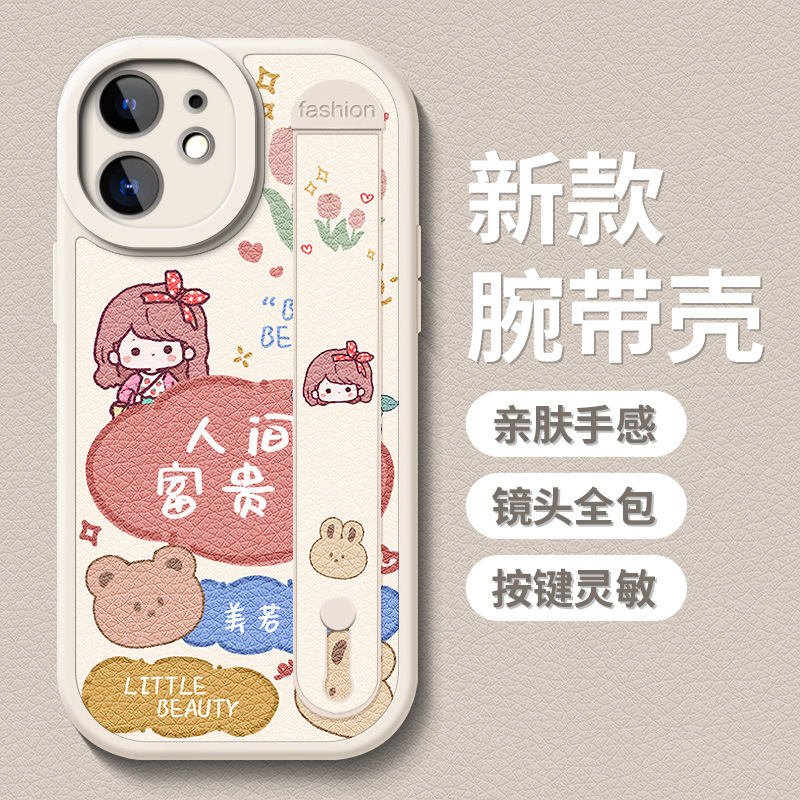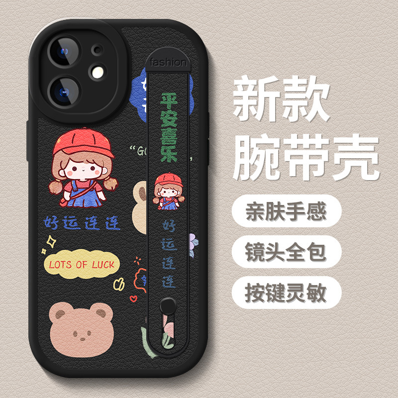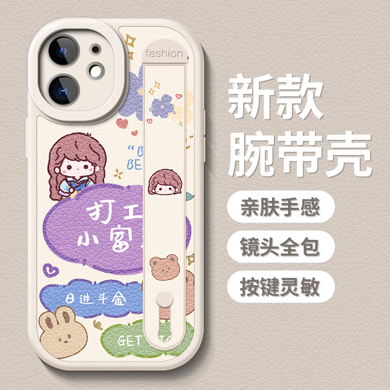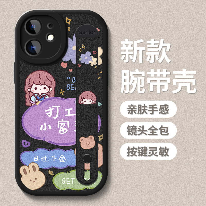 팔찌 아이폰 11Pro 맥스 전화 케이스 xsmax 낙하 방지 스탠드 14Pro 가죽 아이폰 12 실리콘 소프트 케이스
