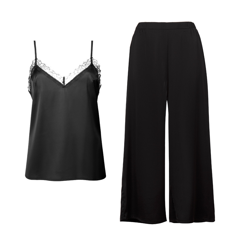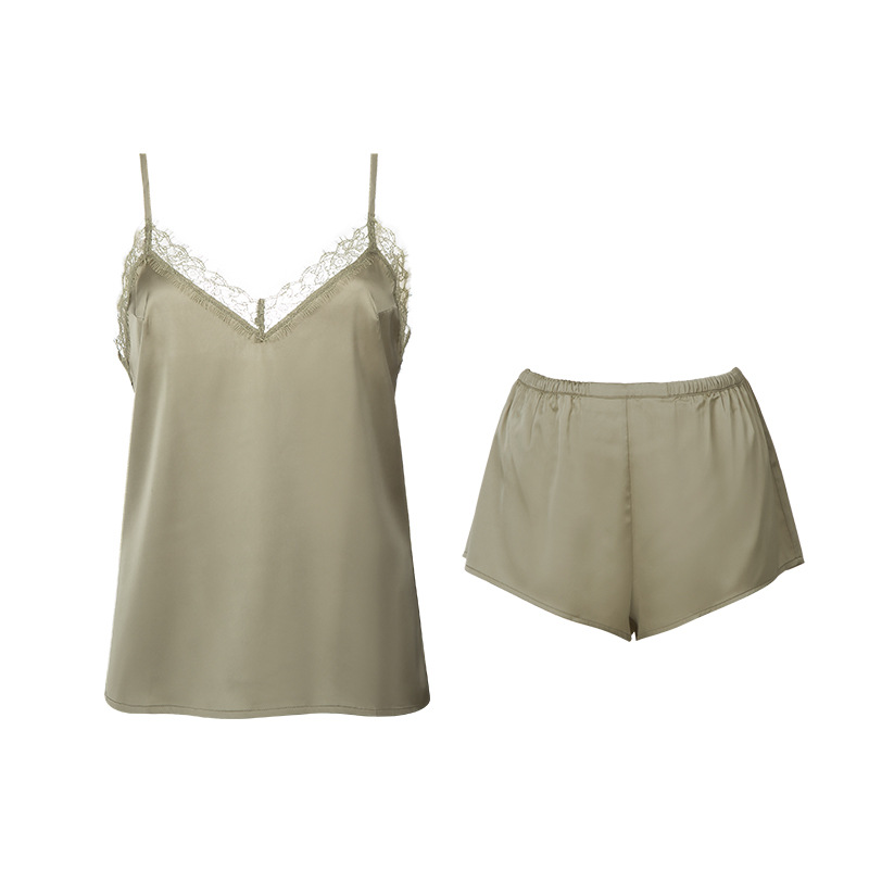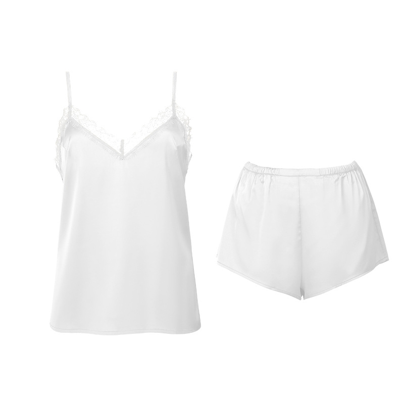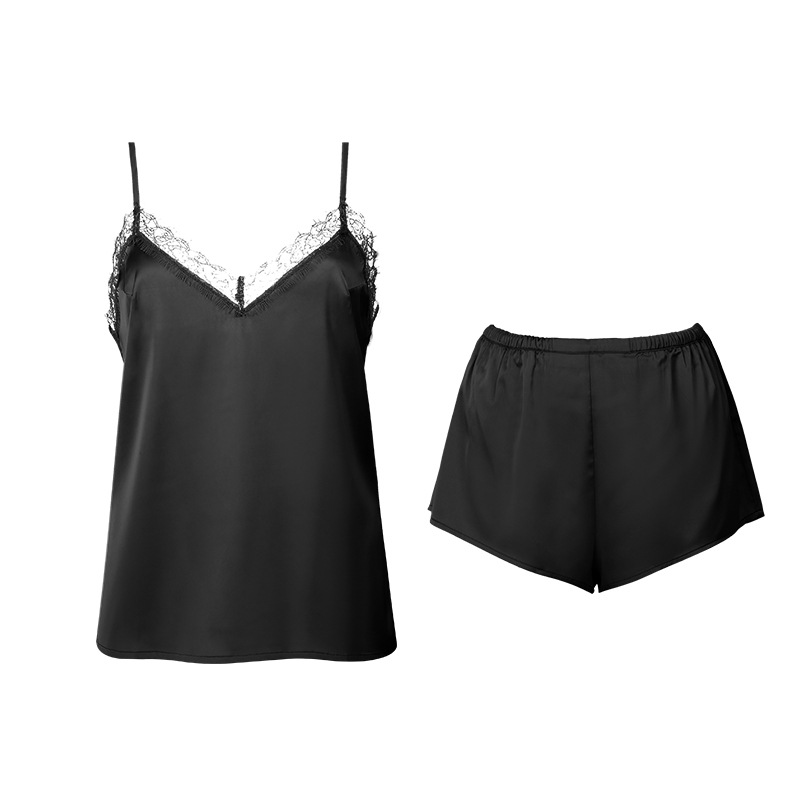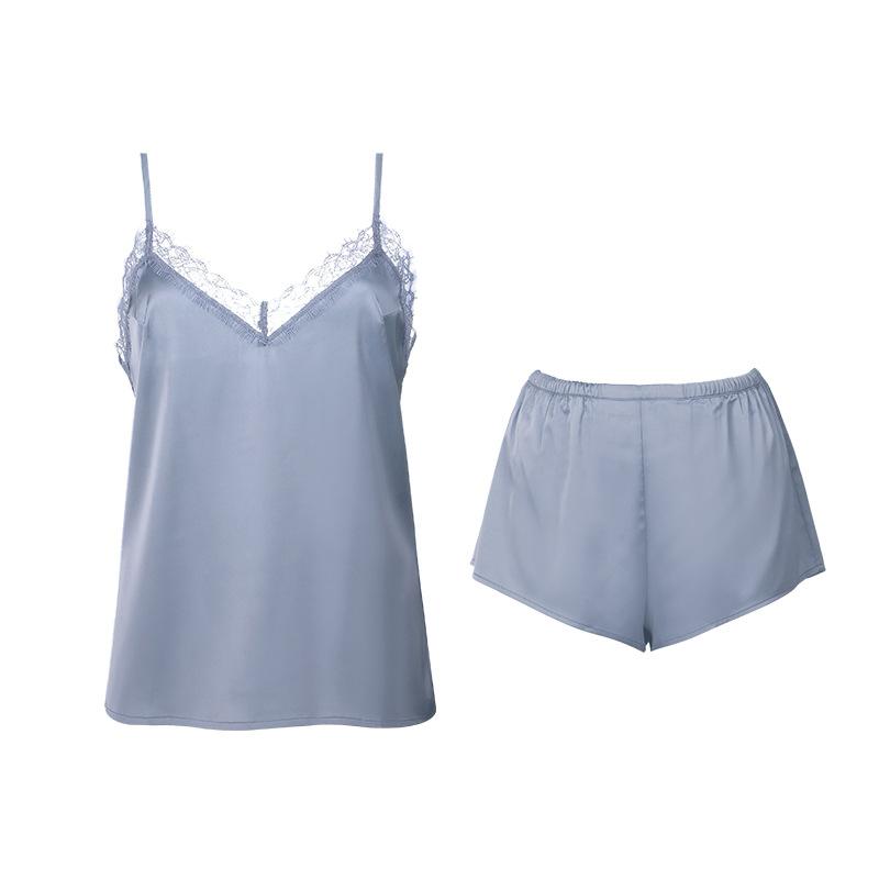 홈웨어 여성의 여름 얇은 홈 V 넥 인공 실크 섹시한 초박형 유혹 스트랩 잠옷 반바지 세트